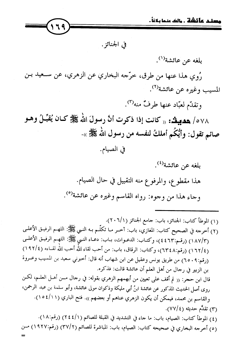 (٥) أخرجه البخاري في صحيحه كتاب: الصيام، باب: المباشرة للصائم (٢/ ٣٧) (رقم: ١٩٢٧) من =