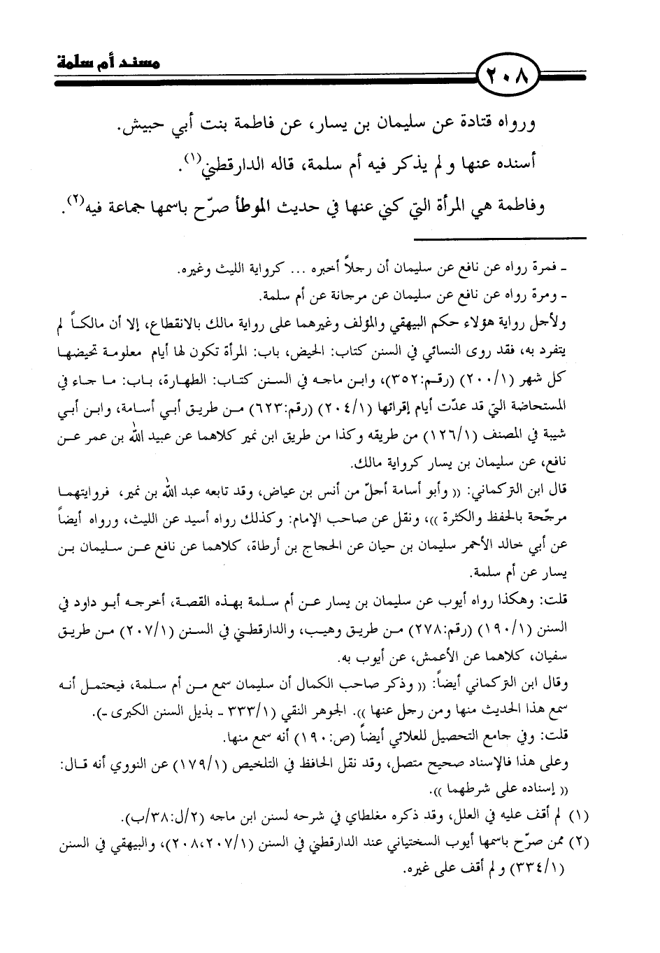 قال ابن التركماني: "وأبو أسامة أجلّ من أنس بن عياض، وقد تابعه عبد الله بن نمير، فروايتهما مرجّحة بالحفظ والكثرة"، ونقل عن صاحب الإمام: وكذلك رواه أسيد عن الليث، ورواه أيضًا عن أبي خالد الأحمر سليمان بن حيان عن الحجاج بن أرطاة، كلاهما عن نافع عن سليمان بن يسار عن أم سلمة.