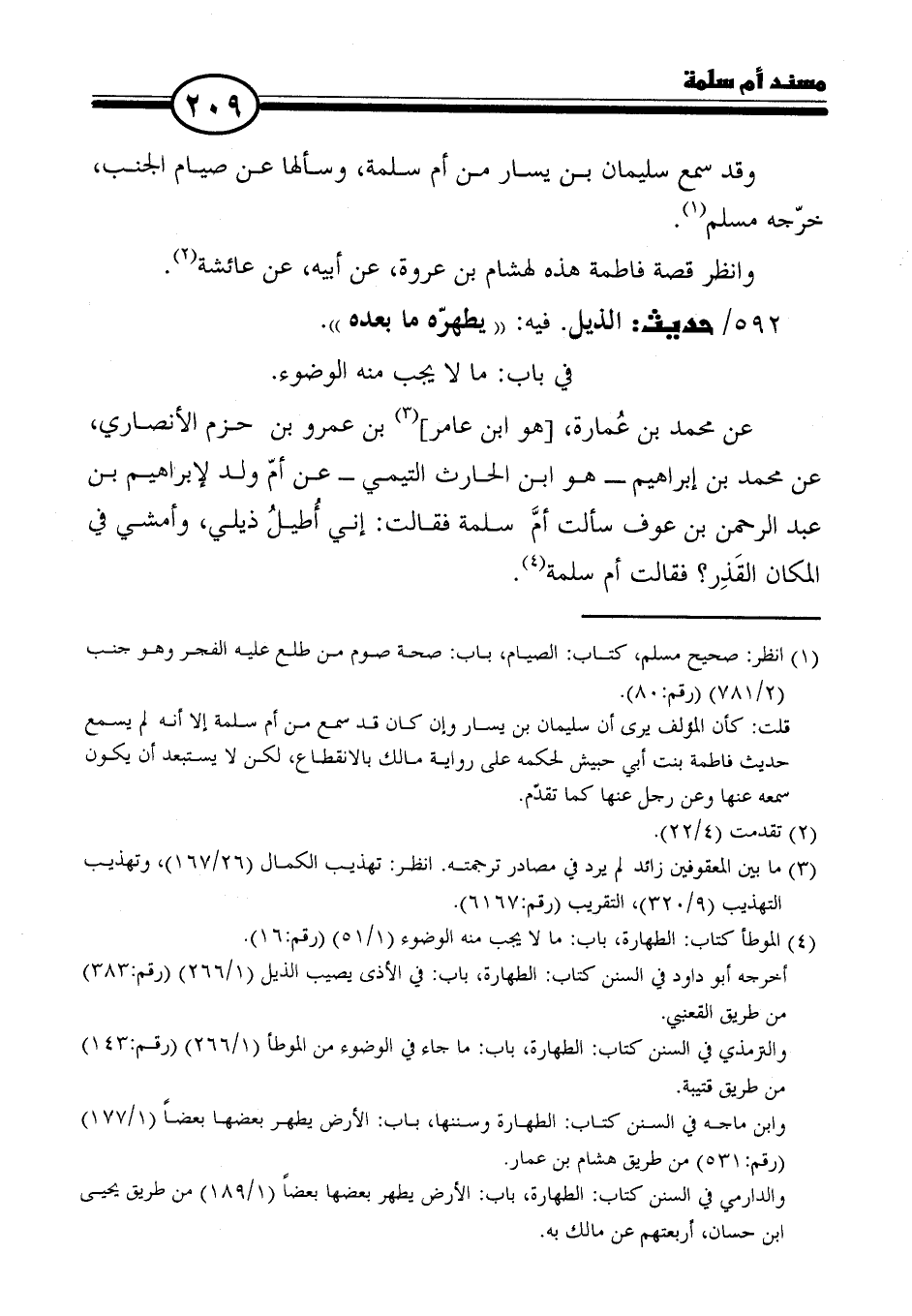 ٥٩٢/ حديث: الذيل. فيه: "يطهرّه ما بعده".