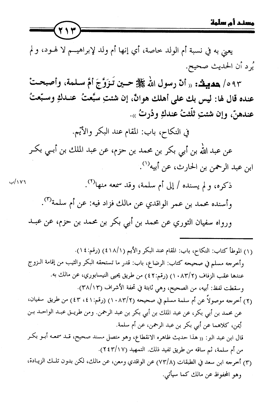 (١) الموطأ كتاب: النكاح، باب: المقام عند البكر والأيم (١/ ٤١٨) (رقم: ١٤).