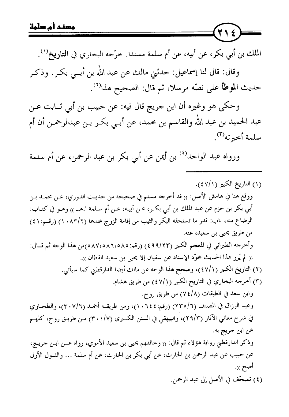 الملك بن أبي بكر، عن أبيه، عن أم سلمة مسندا. خرّجه البخاري في التاريخ (١).