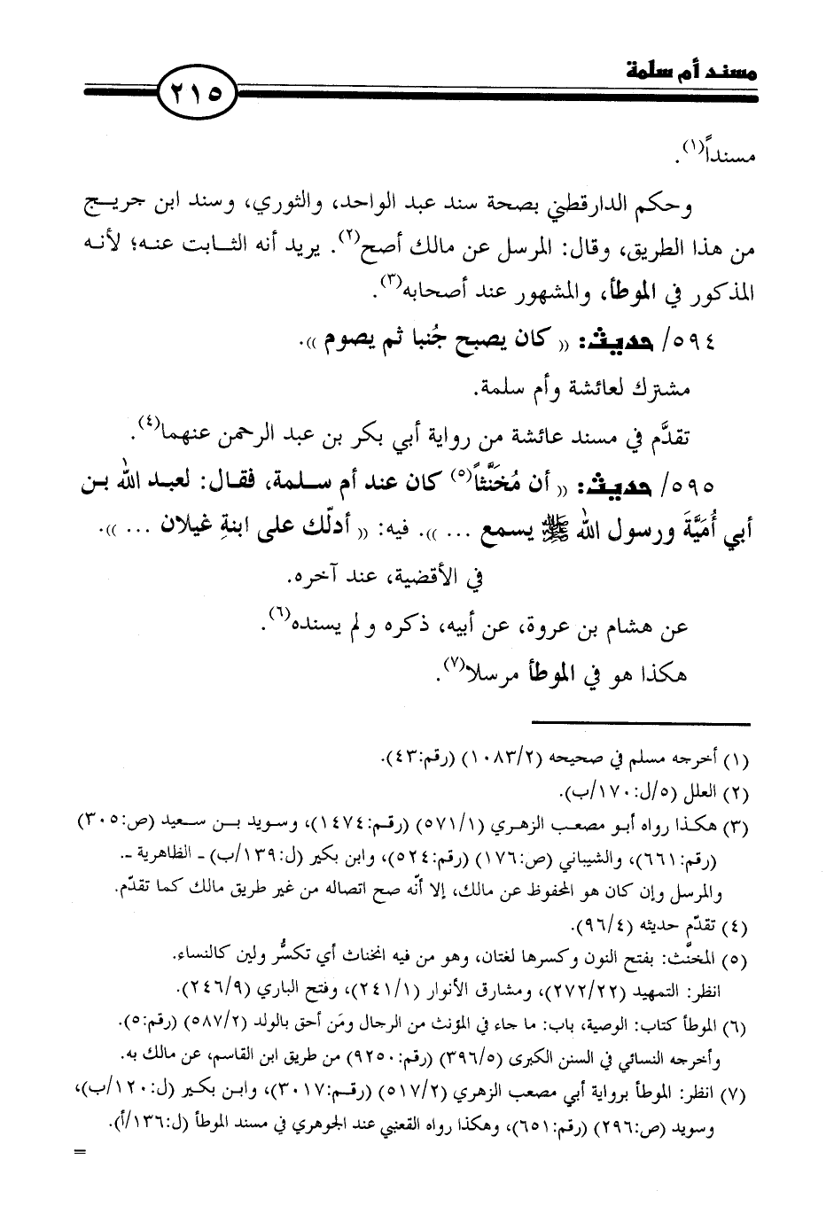 (٧) انظر: الموطأ برواية أبي مصعب الزهري (٢/ ٥١٧) (رقم: ٣٠١٧)، وابن بكير (ل: ١٢٠ /ب)، وسويد (ص: ٢٩٦) (رقم: ٦٥١)، وهكذا رواه القعنبي عند الجوهري في مسند الموطأ (ل: ١٣٦ / أ). =