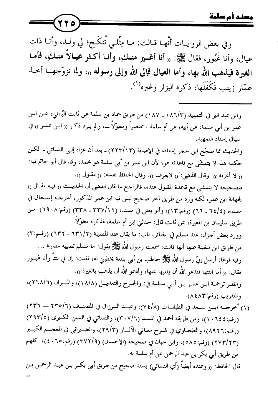 = وابن عبد البر في التمهيد (٣/ ١٨٦ - ١٨٧) من طريق حماد بن سلمة عن ثابت البُناني، عن ابن عمر بن أبي سلمة، عن أبيه، عن أم سلمة -مختصرًا ومطوّلًا-، ولم يرد ذكر "ابن عمر" في سياق إسناد التمهيد.