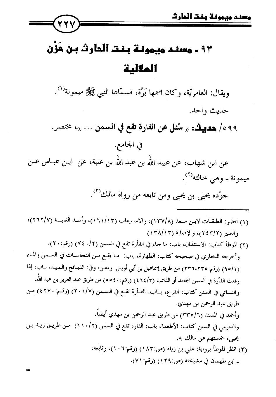 ٩٣ - مسند ميمونة بنت الحارث بن حَزْن الهلالية
