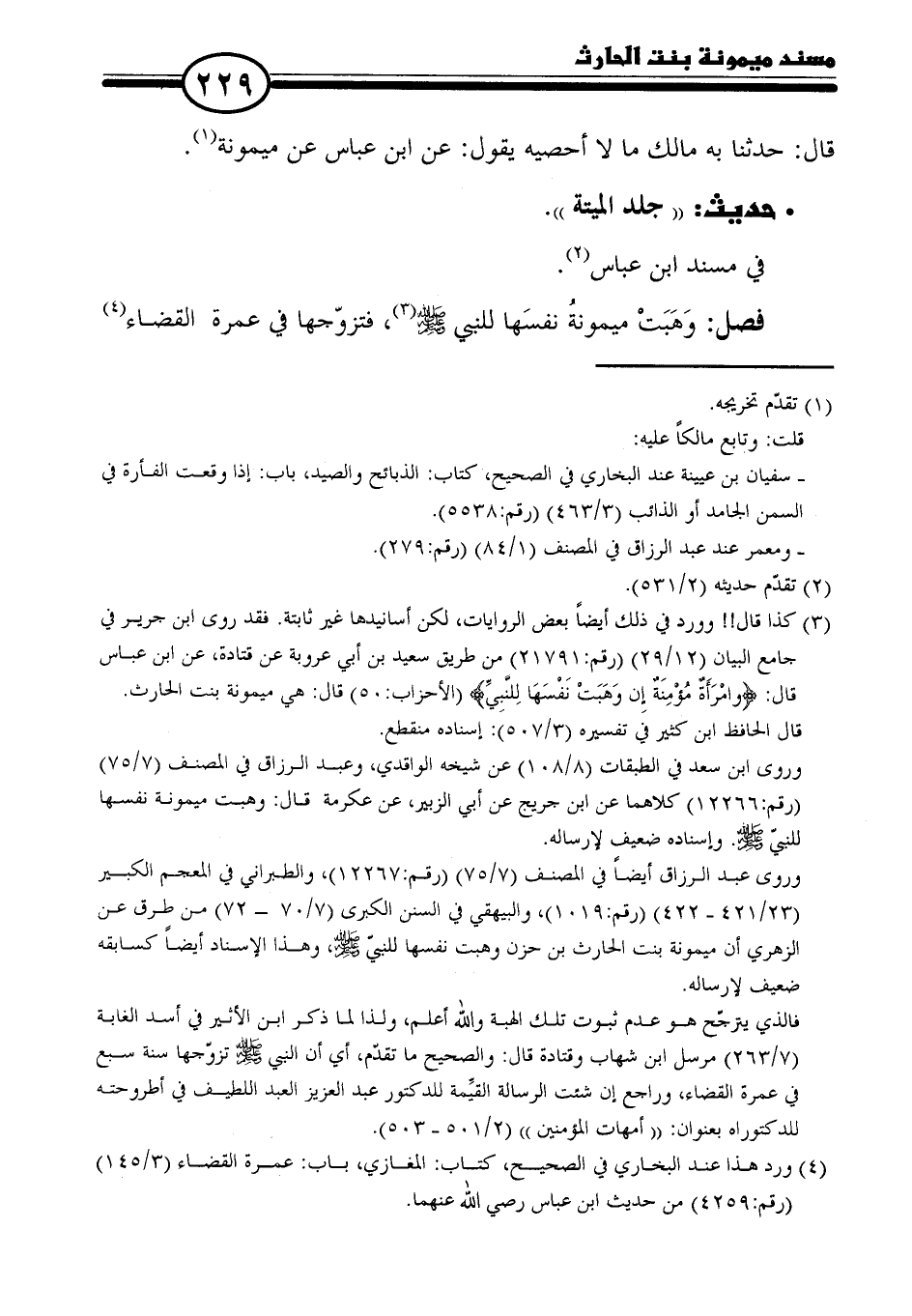 (٤) ورد هذا عند البخاري في الصحيح، كتاب: المغازي، باب: عمرة القضاء (٣/ ١٤٥) (رقم: ٤٢٥٩) من حديث ابن عباس رصي الله عنهما.