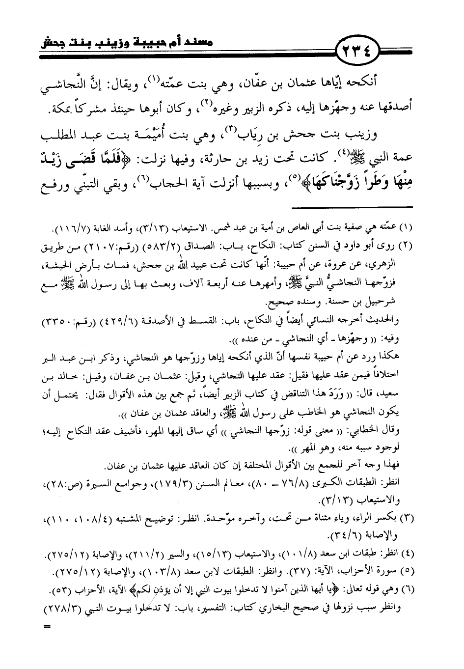 (٥) سورة الأحزاب، الآية: (٣٧). وانظر: الطبقات لابن سعد (٨/ ١٠٣)، والإصابة (١٢/ ٢٧٥).
