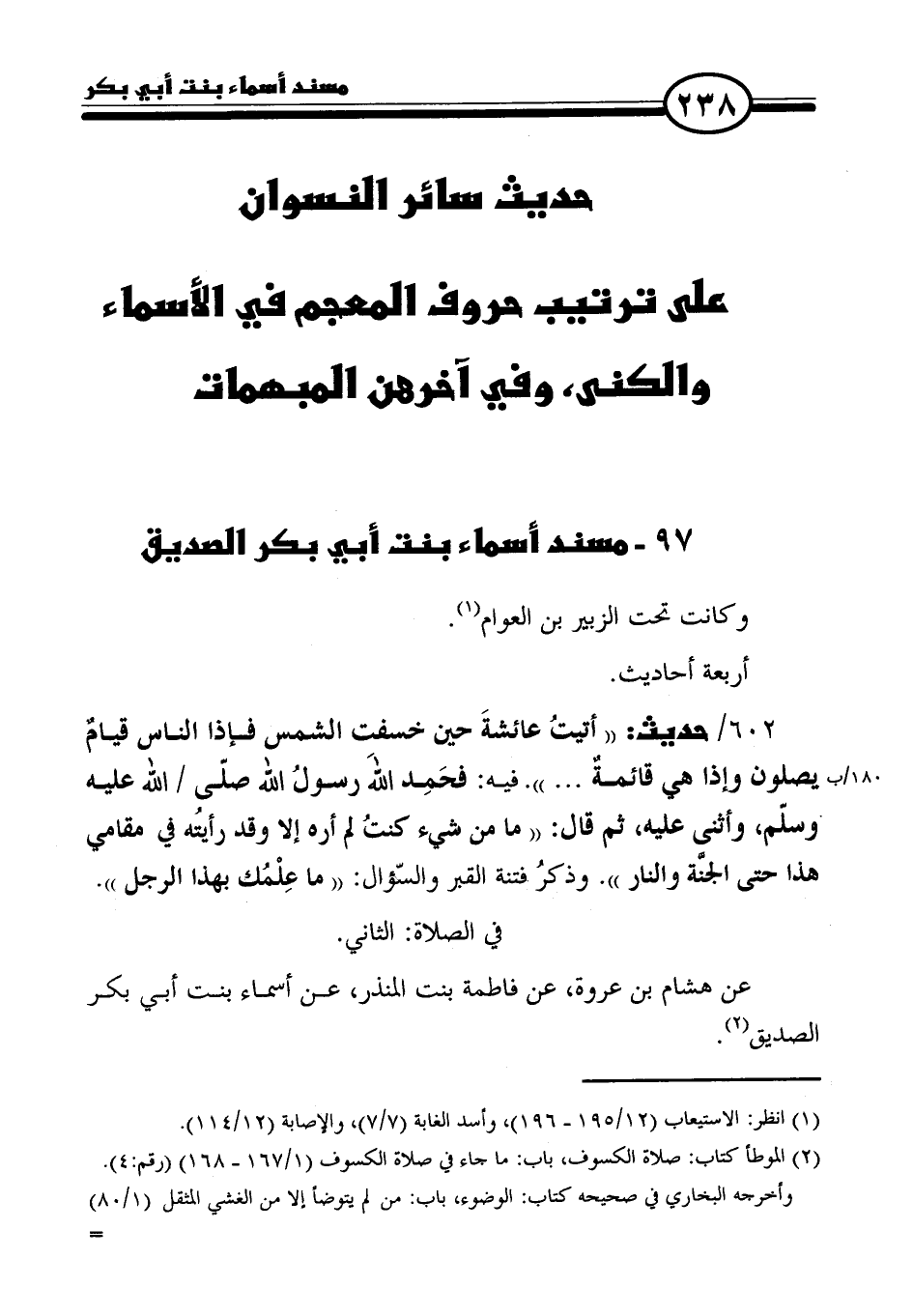 ٩٧ - مسند أسماء بنت أبي بكر الصديق