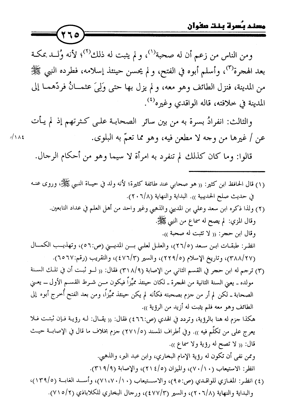 (٣) ترجم له ابن حجر في القسم الثاني من الإصابة (٩/ ٣١٨) فقال: "لو ثبت أن في تلك السنة مولده -يعني السنة الثانية من الهجرة- لكان حينئذ مميزًا فيكون من شرط القسم الأول -يعني الصحابة- لكن لم أر من جزم بصحبته فكأنه لم يكن حينئذ مميِّزًا، ومن بعد الفتح أُخرج أبوه إلي الطائف وهو معه فلم يثبت له أزيد من الرؤية".