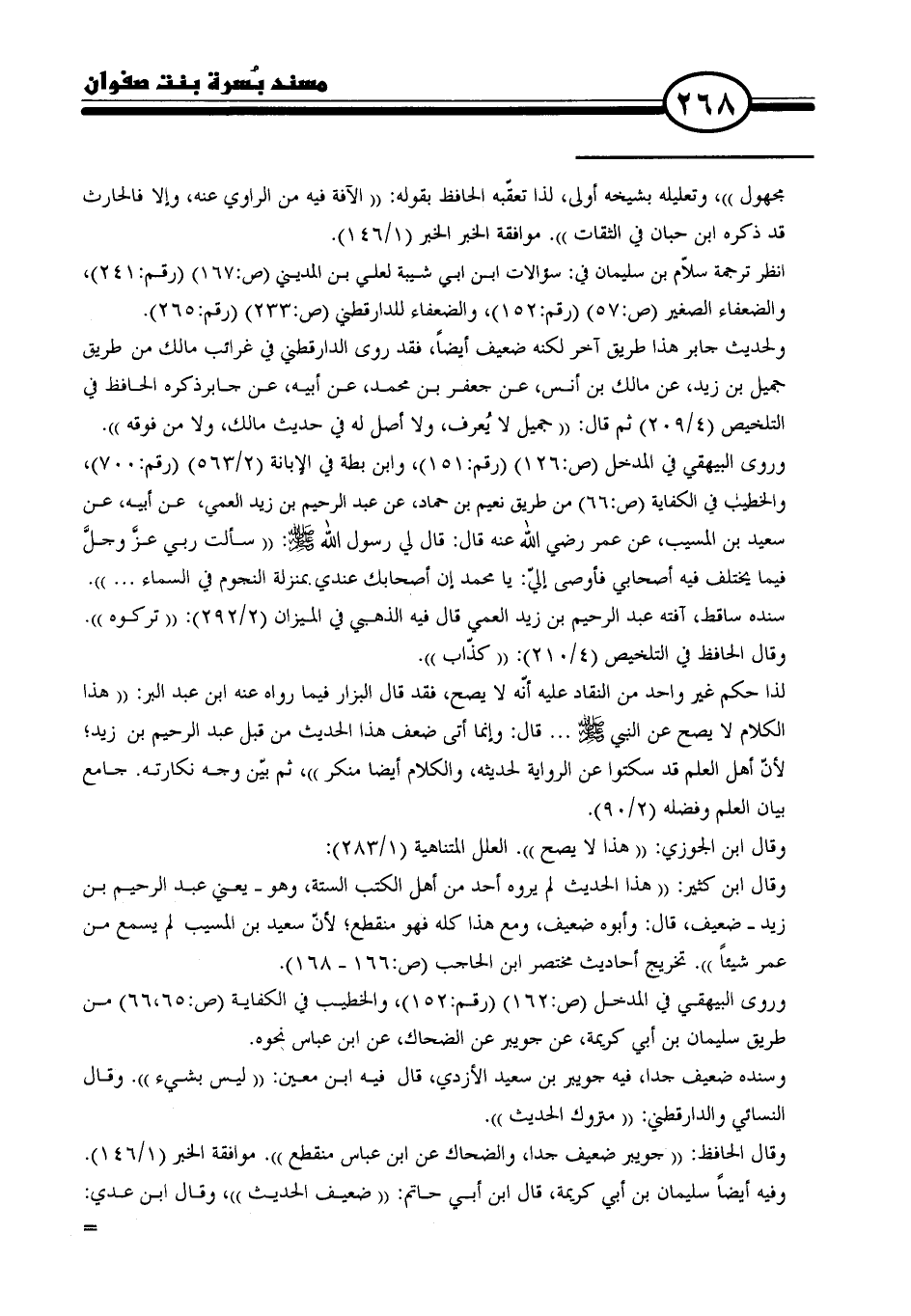 وقال ابن كثير: "هذا الحديث لم يروه أحد من أهل الكتب الستة، وهو -يعني عبد الرحيم بن زيد- ضعيف، قال: وأبوه ضعيف، ومع هذا كله فهو منقطع: لأنّ سعيد بن المسيب لم يسمع من عمر شيئًا". تخريج أحاديث مختصر ابن الحاجب (ص: ١٦٦ - ١٦٨).