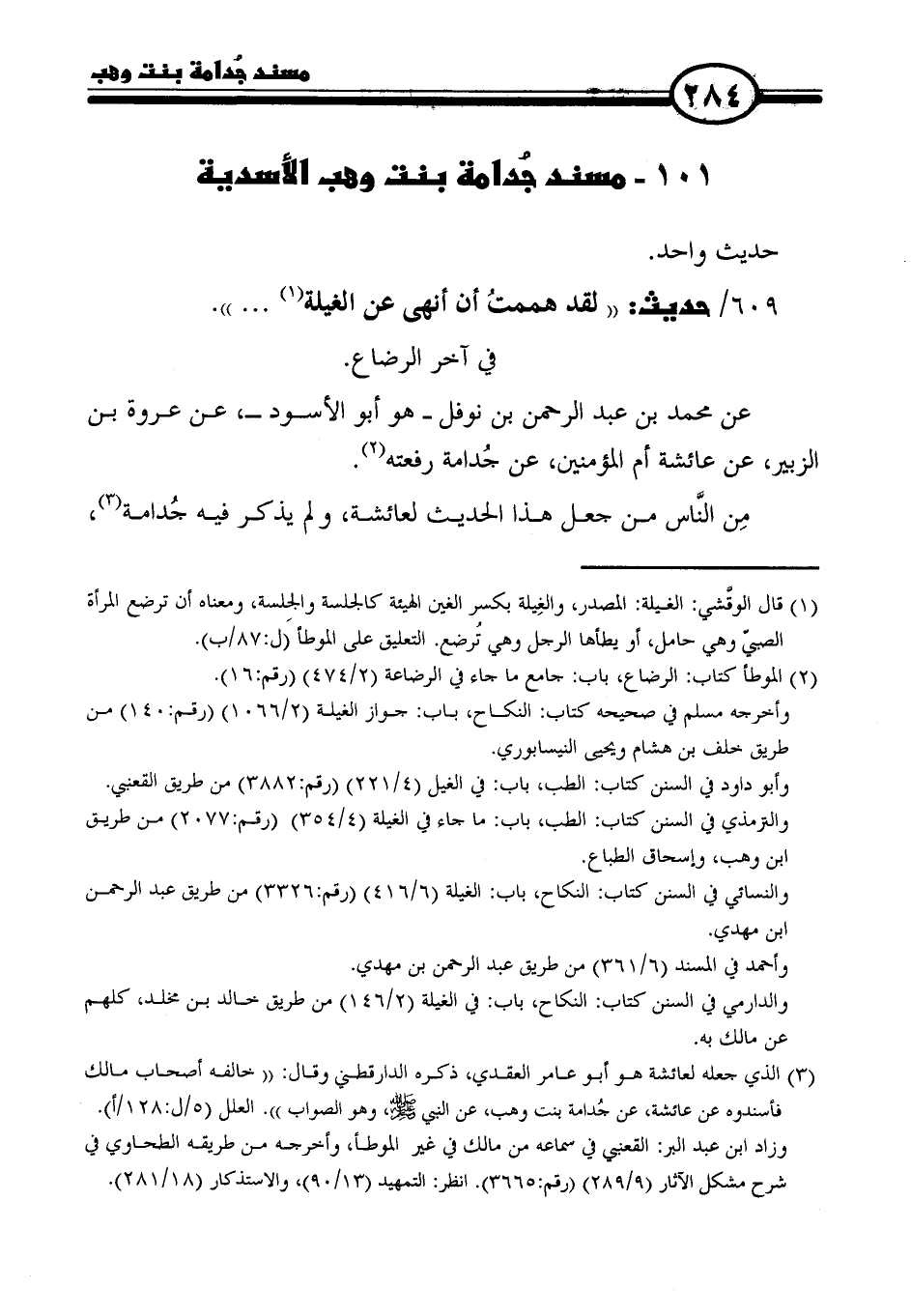 (٣) الذي جعله لعاثشة هو أبو عامر العقدي، ذكره الدارقطني وقال: "خالفه أصحاب مالك فأسندوه عن عائشة، عن جُدامة بنت وهب، عن النَّبيّ - صلى الله عليه وسلم -، وهو الصواب". العلل (٥ / ل: ١٢٨ / أ).