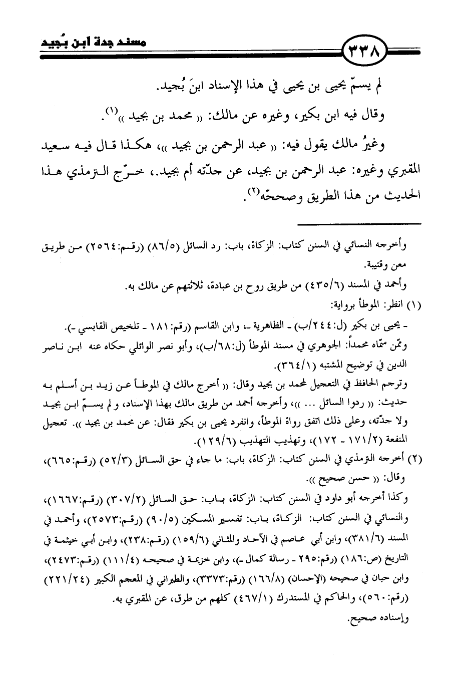 وغيرُ مالك يقول فيه: "عبد الرحمن بن بجيد"، هكذا قال فيه سعيد المقبري وغيره: عبد الرحمن بن بجيد، عن جدّته أم بجيد.، خرّج الترمذي هذا الحديث من هذا الطريق وصححّه (٢).