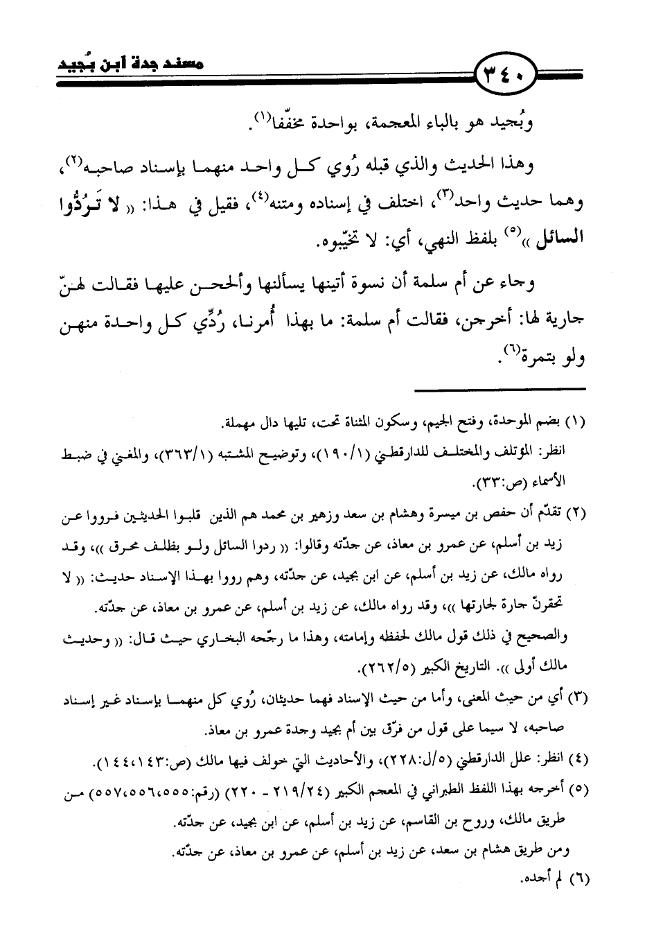 (٥) أخرجه بهذا اللفظ الطبراني في المعجم الكبير (٢٤/ ٢١٩ - ٢٢٠) (رقم: ٥٥٥، ٥٥٦، ٥٥٧) من طريق مالك، وروح بن القاسم، عن زيد بن أسلم، عن ابن جميد، عن جدَّته.