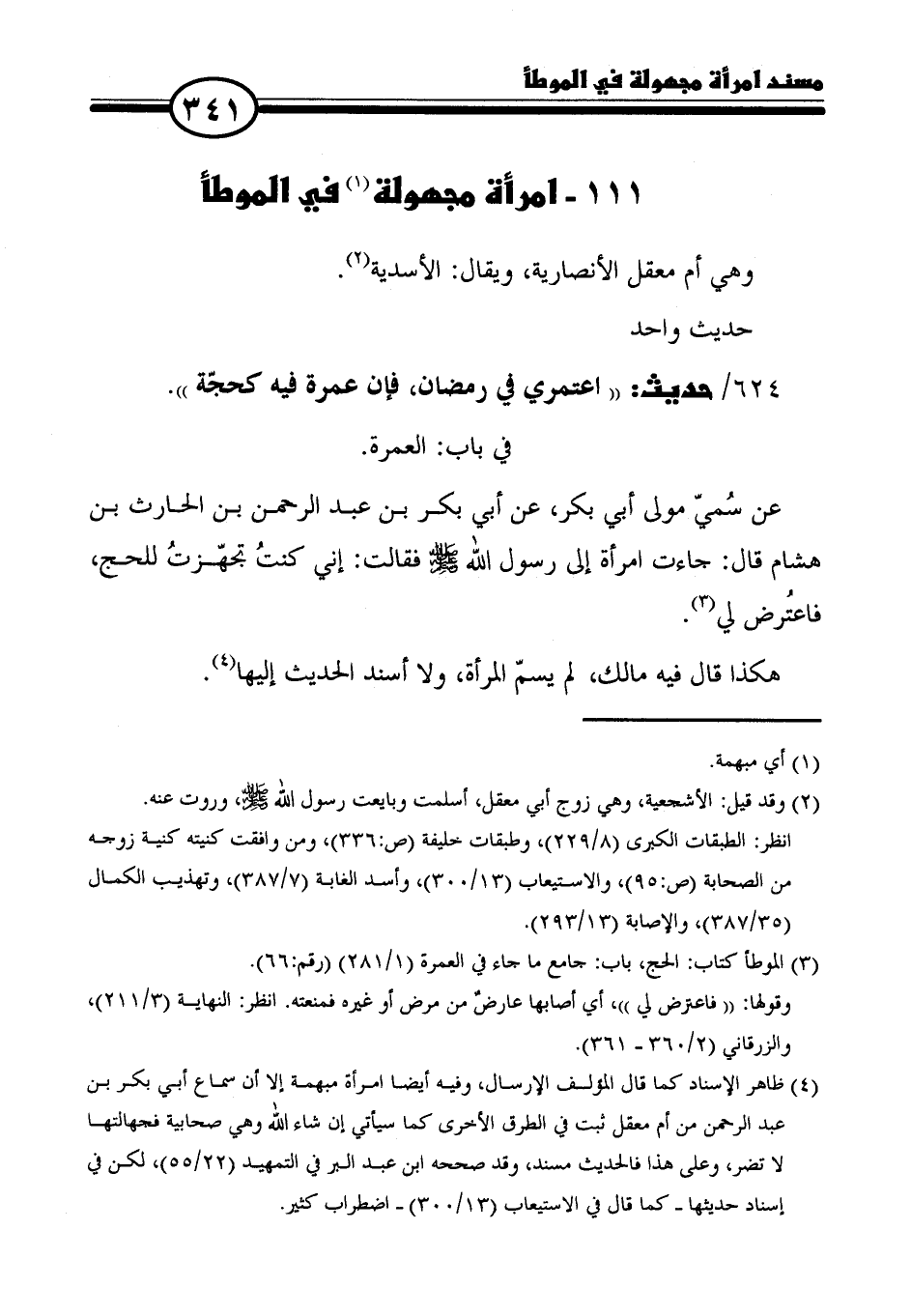 ١١٥ - امرأة مجهولة (١) في الموطأ