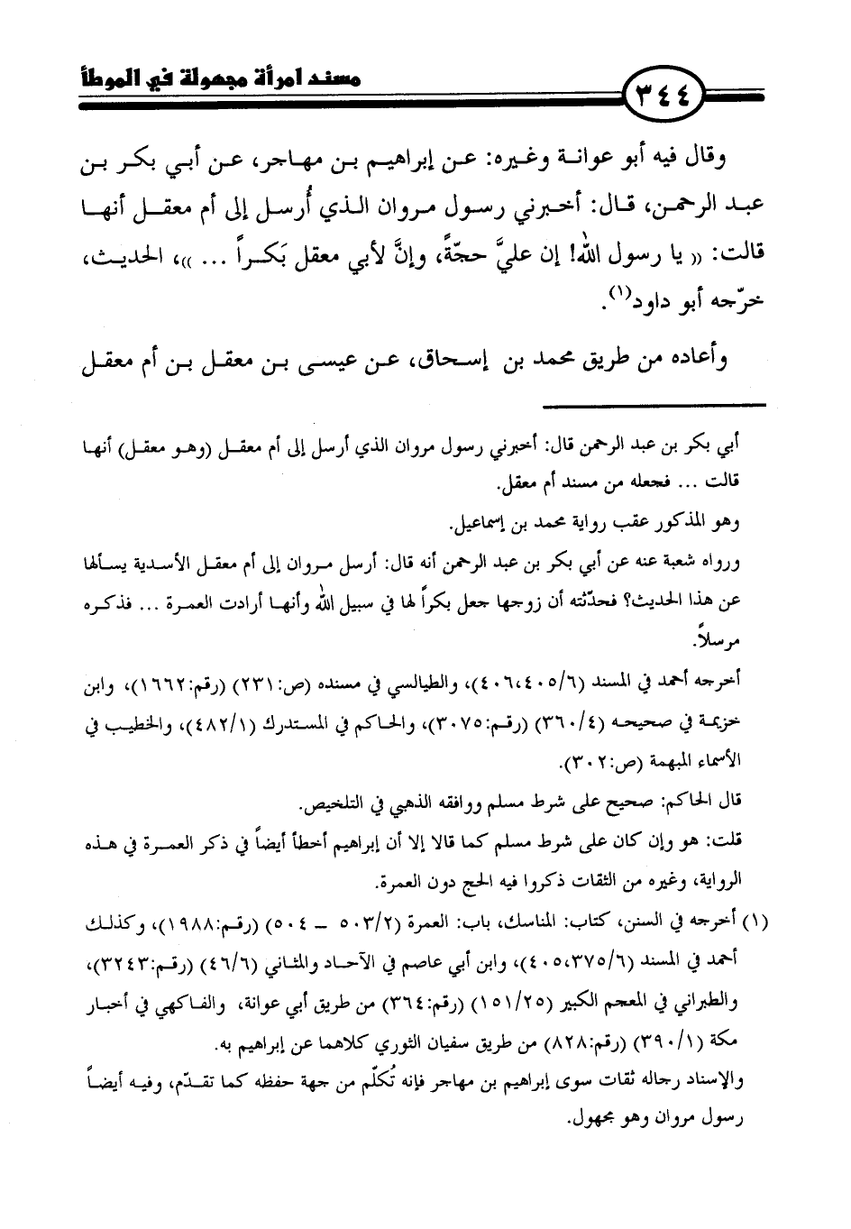 = أبي بكر بن عبد الرحمن قال: أخبرني رسول مروان الذي أرسل إلى أم معقل (وهو معقل) أنها قالت ... فجعله من مسند أم معقل.