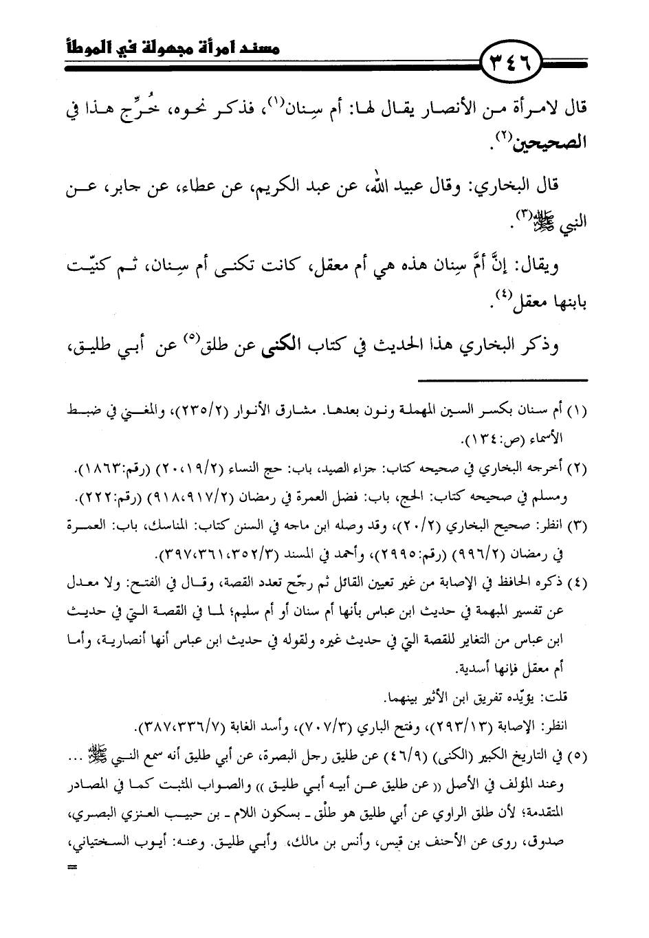 (١) أم سنان بكسر السين المهملة ونون بعدها. مشارق الأنوار (٢/ ٢٣٥)، والمغني في ضبط الأسماء (ص: ١٣٤).
