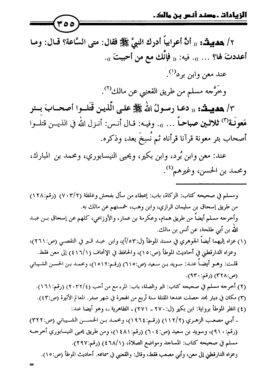وعزاه الدارقطني إلى معن، وأبي مصعب فقط، وقال: والقعنبي في سماعه. أحاديث الموطأ (ص: ١٥). =