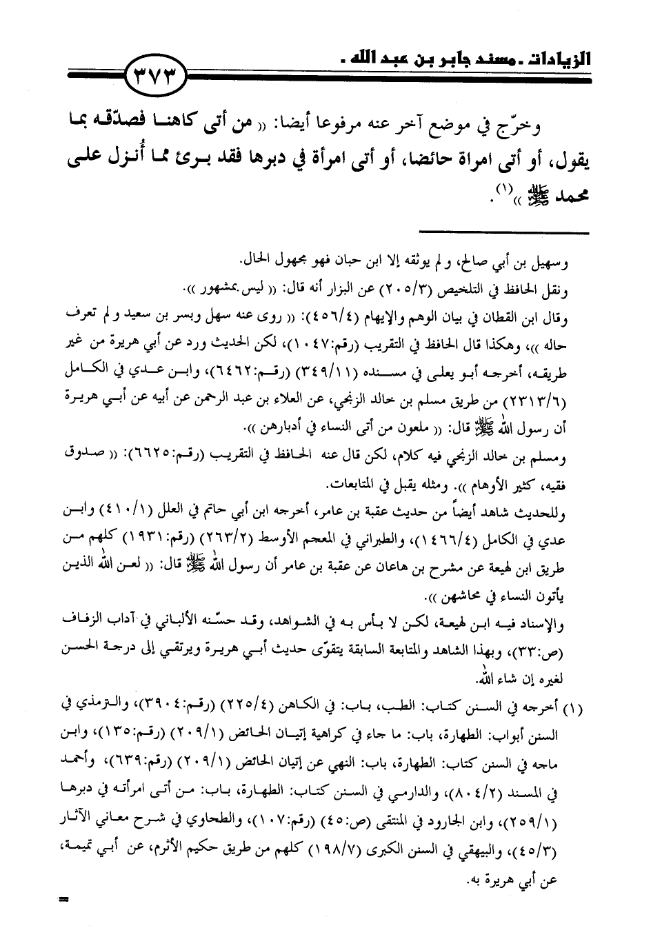 (١) أخرجه في السنن كتاب: الطب، باب: في الكاهن (٤/ ٢٢٥) (رقم: ٣٩٠٤)، والترمذي في السنن أبواب: الطهارة، باب: ما جاء في كراهية إتيان الحائض (١/ ٢٠٩) (رقم: ١٣٥)، وابن ماجه في السنن كتاب: الطهارة، باب: النهي عن إتيان الحائض (١/ ٢٠٩) (رقم: ٦٣٩)، وأحمد في المسند (٢/ ٨٠٤)، والدارمي في السنن كتاب: الطهارة، باب: من أتى امرأته في دبرها (١/ ٢٥٩)، وابن الجارود في المنتقى (ص: ٤٥) (رقم: ١٠٧)، والطحاوي في شرح معاني الآثار (٣/ ٤٥)، والبيهقي في السنن الكبرى (٧/ ١٩٨) كلهم من طريق حكيم الأثرم، عن أبي تميمة، عن أبي هريرة به. =