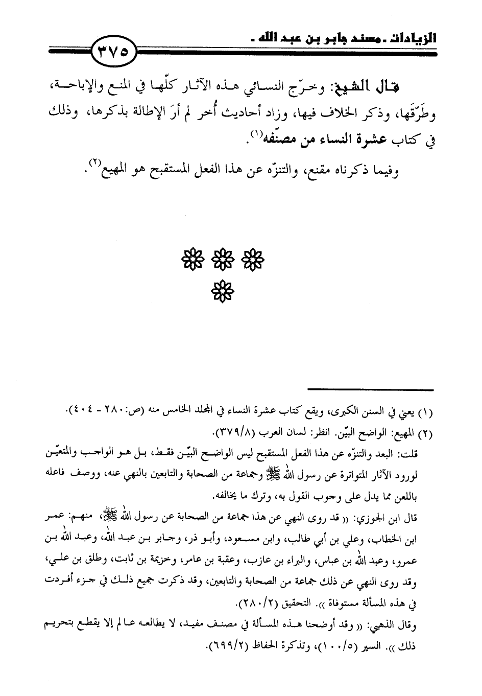 (١) يعني في السنن الكبرى، ويقع كتاب عشرة النساء في المجلد الخامس منه (ص: ٢٨٠ - ٤٠٤).