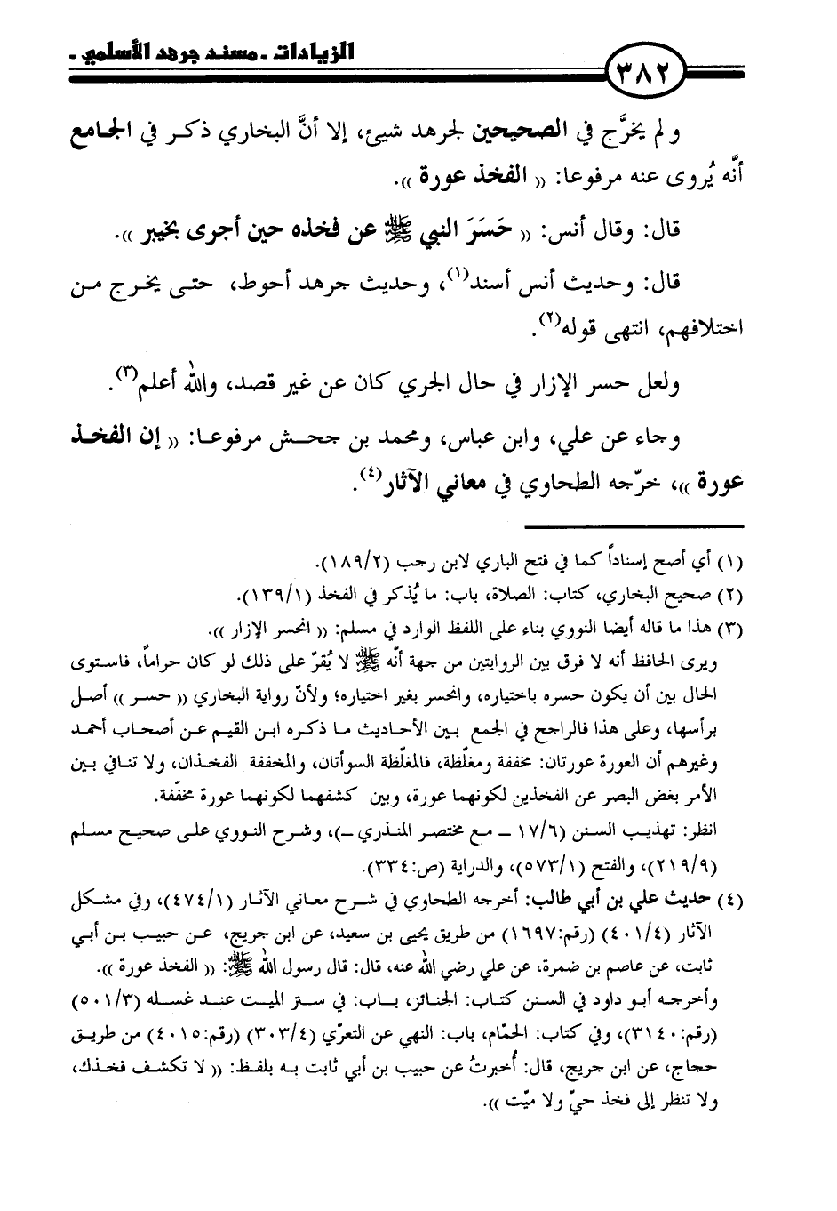 (٢) صحيح البخاري، كتاب: الصلاة، باب: ما يُذكر في الفخذ (١/ ١٣٩).