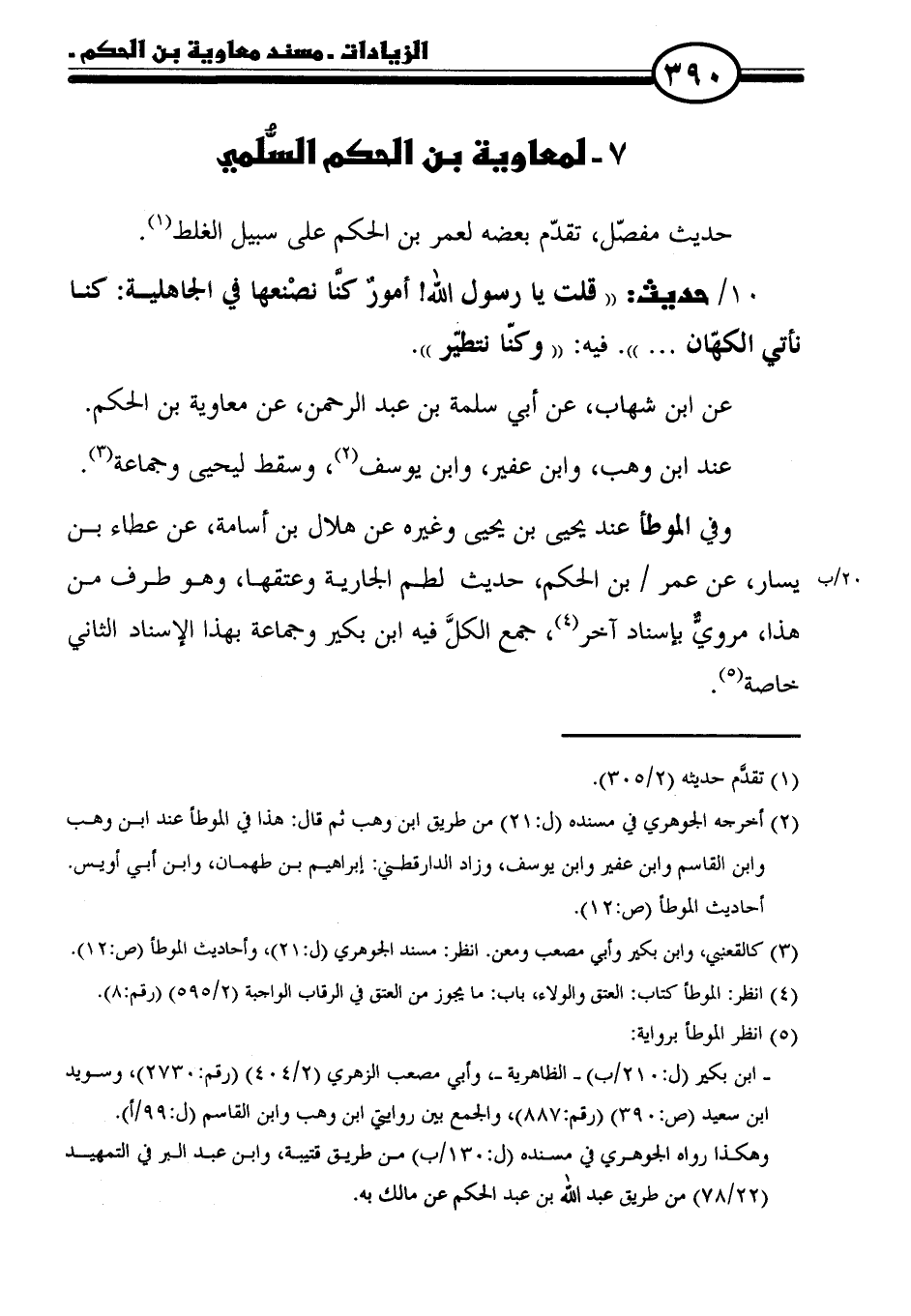 (٣) كالقعنبي، وابن بكير وأبي مصعب ومعن. انظر: مسند الجوهري (ل: ٢١)، وأحاديث الموطأ (ص: ١٢).