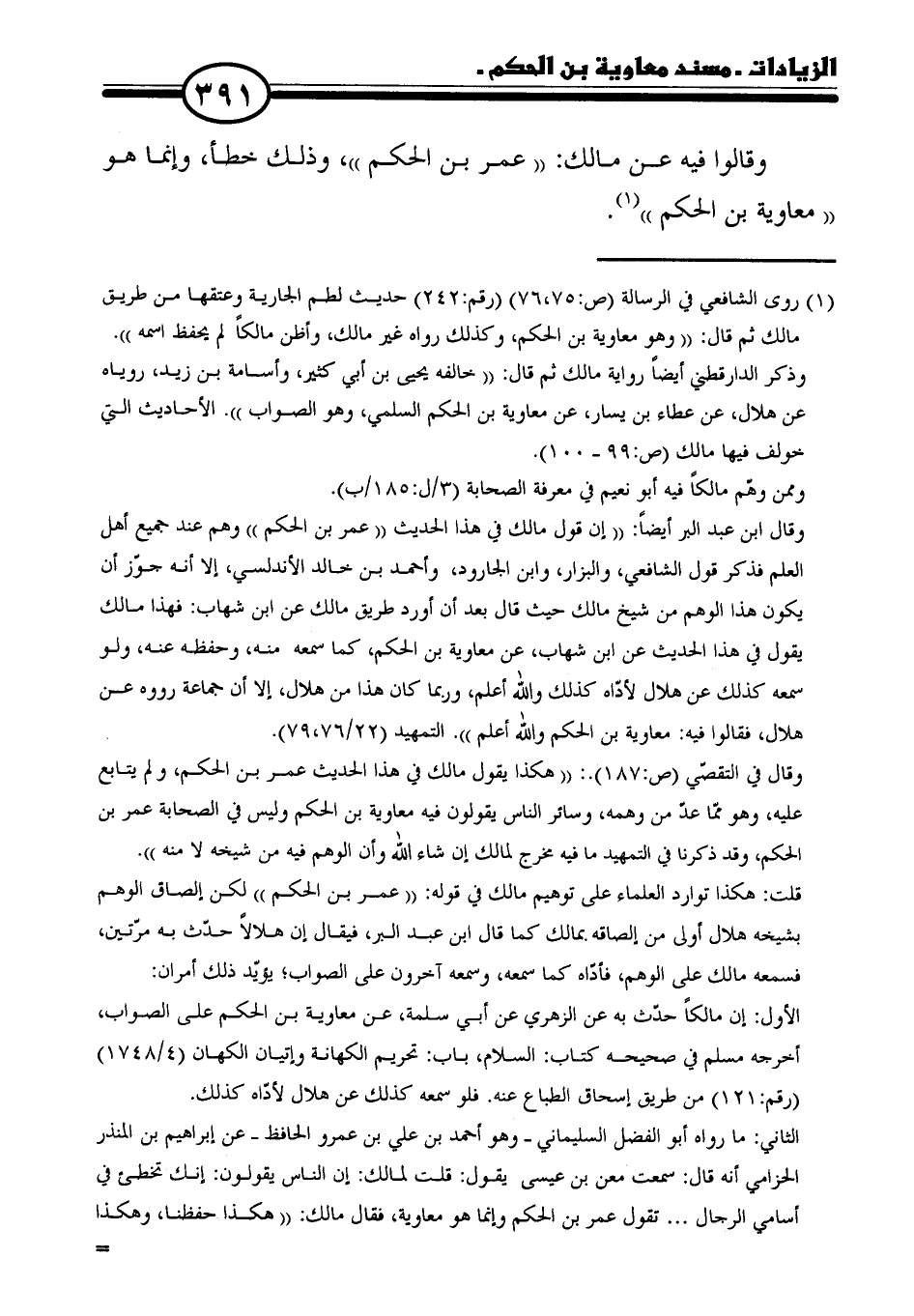 وقالوا فيه عن مالك: "عمر بن الحكم"، وذلك خطأ، وإنما هو" معاوية بن الحكم" (١).