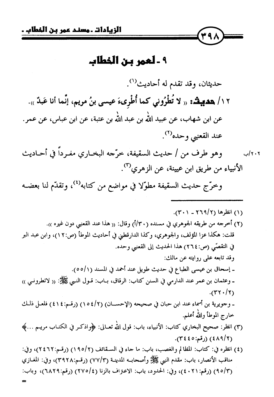 - وعثمان بن عمر عند الدارمي في السنن كتاب: الرقاق، باب: قول النبي - صلى الله عليه وسلم -: "لا تطروني" (٢/ ٣٢٠).
