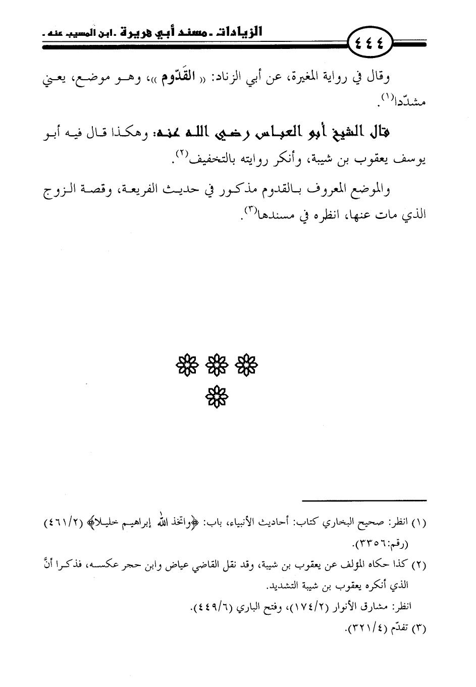 والموضع المعروف بالقدوم مذكور في حديث الفريعة، وقصة الزوج الذي مات عنها، انظره في مسندها (٣).