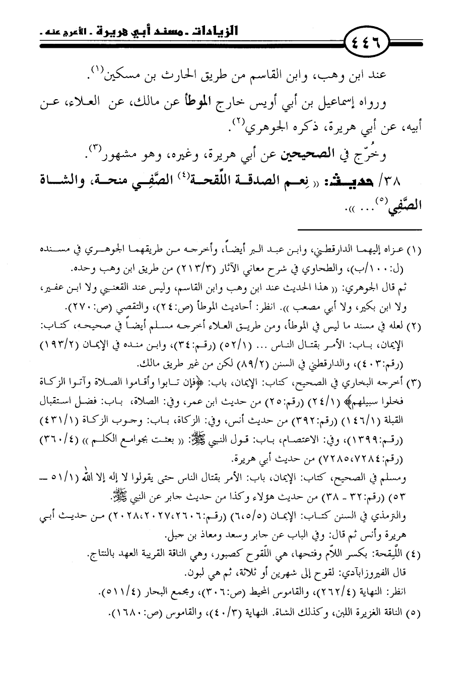 ٣٨ / حديث: "نِعم الصدقة اللِّقحة (٤) الصَّفِي منحة، والشاة الصَّفِي (٥) ... ".