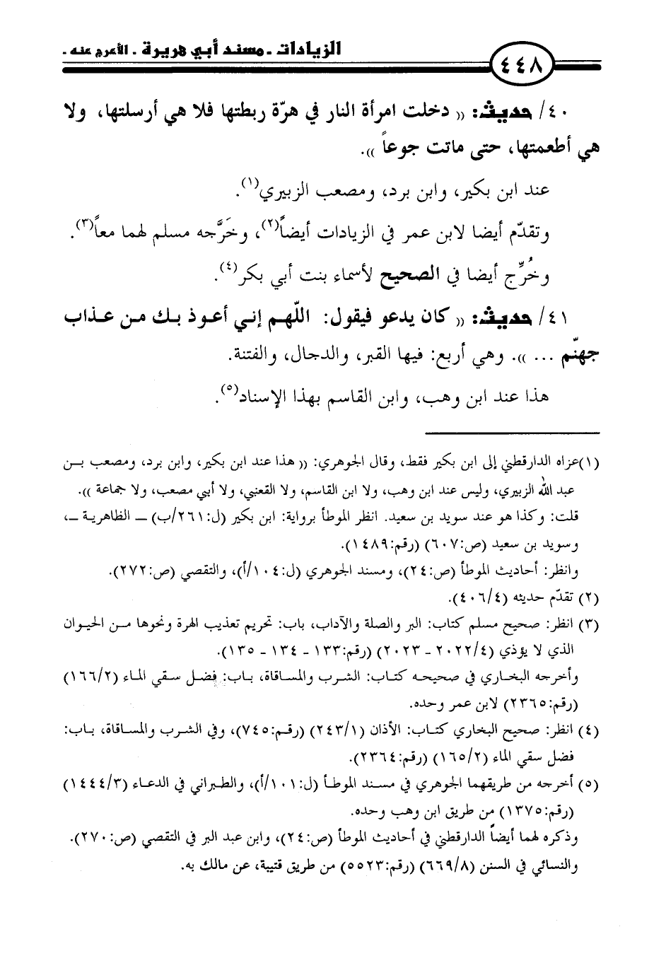 ٤٠ / حديث: "دخلت امرأة النار في هرّة ربطتها فلا هي أرسلتها، ولا هي أطعمتها، حتى ماتت جوعًا".