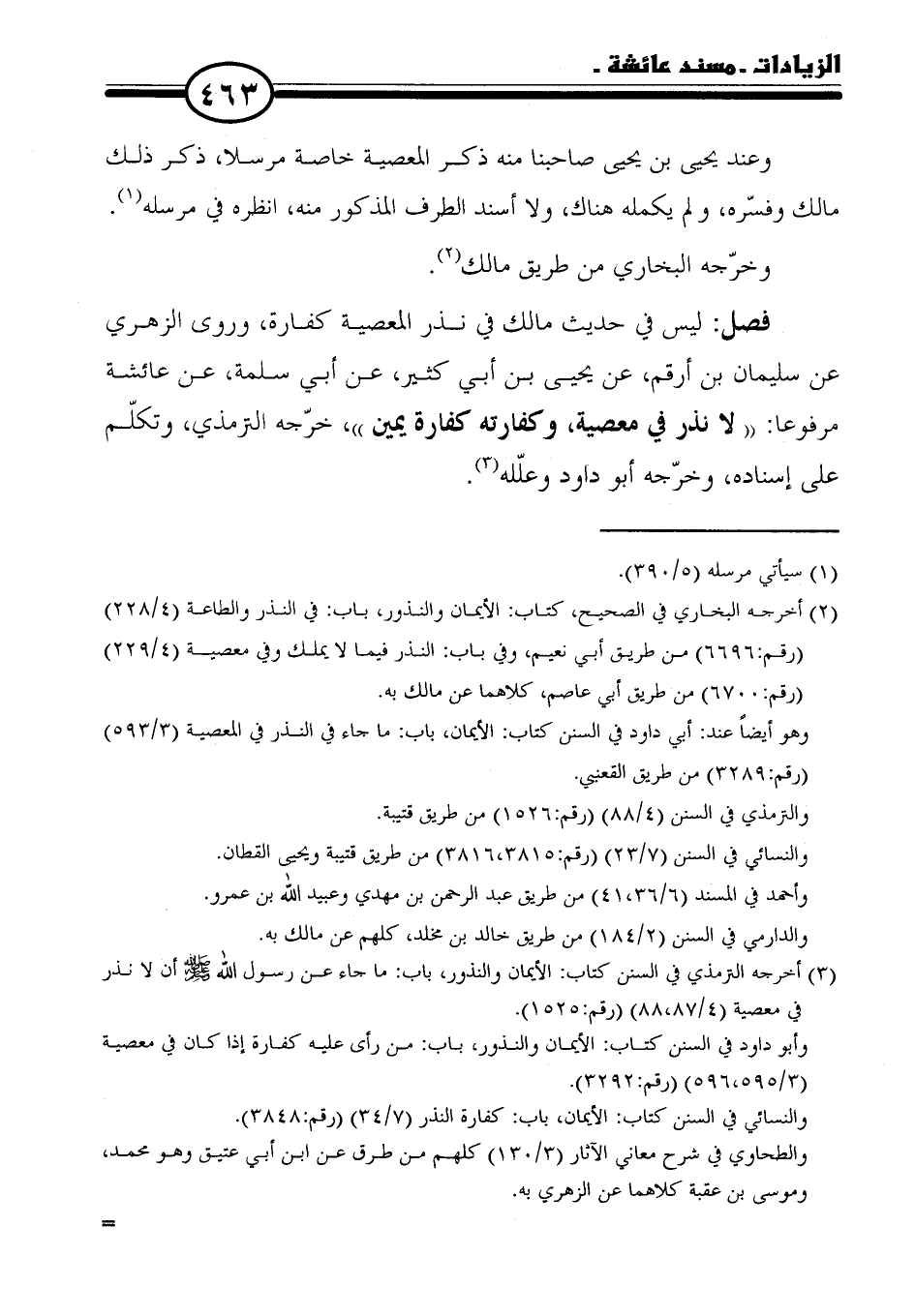 (٣) أخرجه الترمذي في السنن كتاب: الأيمان والنذور، باب: ما جاء عن رسول الله - صلى الله عليه وسلم - أن لا نذر في معصية (٤/ ٨٧، ٨٨) (رقم: ١٥٢٥).