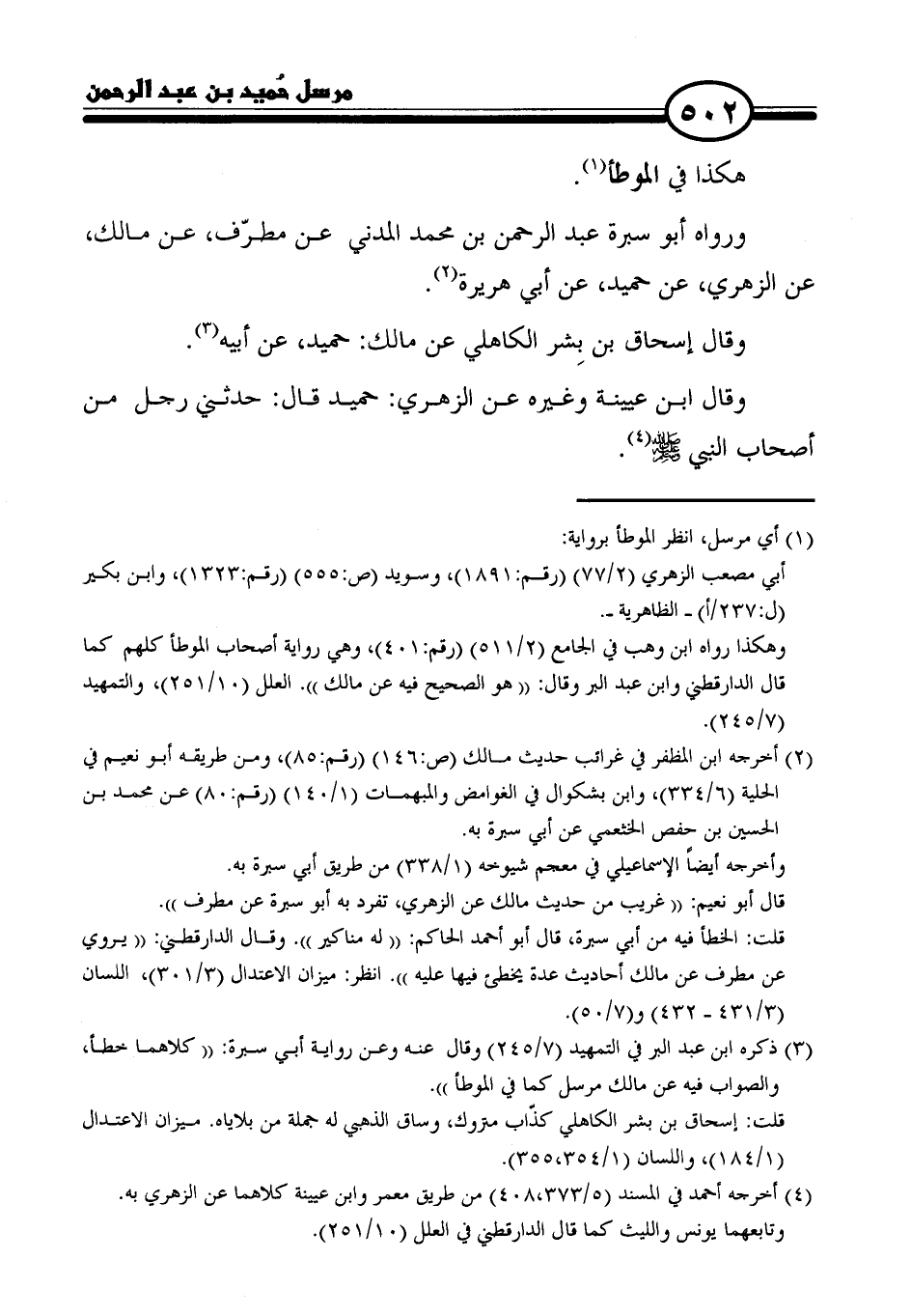 ورواه أبو سبرة عبد الرحمن بن محمد المدني عن مطرّف، عن مالك، عن الزهري، عن حميد، عن أبي هريرة (٢).