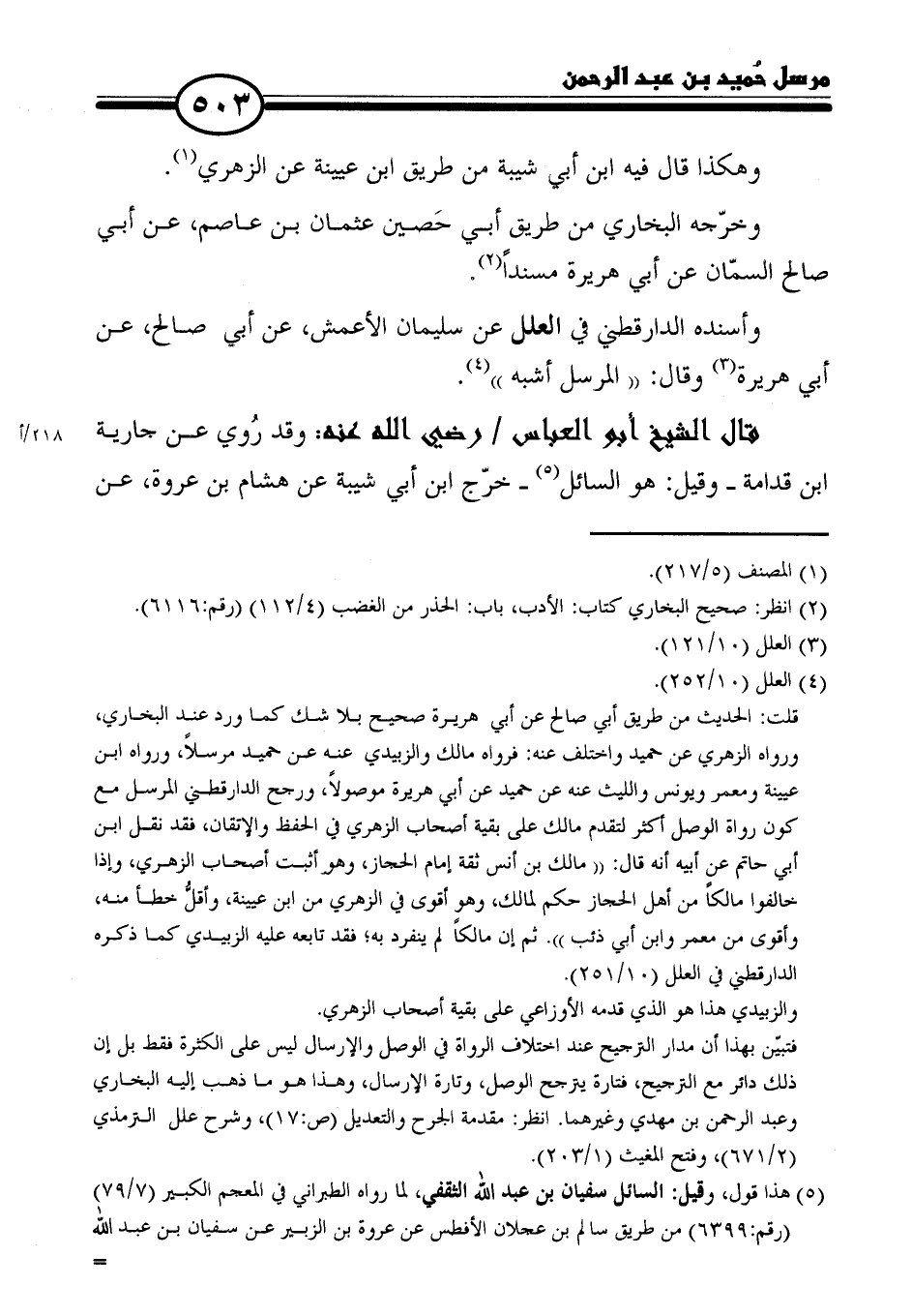 فتبيّن بهذا أن مدار الترجيح عند اختلاف الرواة في الوصل والإرسال ليس على الكثرة فقط بل إن ذلك دائر مع الترجيح، فتارة يترجح الوصل، وتارة الإرسال، وهذا هو ما ذهب إليه البخاري وعبد الرحمن بن مهدي وغيرهما. انظر: مقدمة الجرح والتعديل (ص: ١٧)، وشرح علل الترمذي (٢/ ٦٧١)، وفتح المغيث (١/ ٢٠٣).