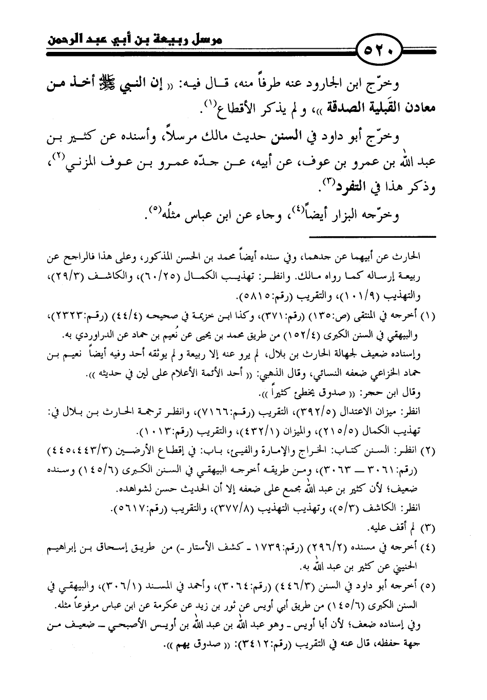 = الحارث عن أبيهما عن جدهما، وفي سنده أيضًا محمد بن الحسن المذكور، وعلى هذا فالراجح عن ربيعة إرساله كما رواه مالك. وانظر: تهذيب الكمال (٦٠/ ٢٥)، والكاشف (٣/ ٢٩)، والتهذيب (٩/ ١٠١)، والتقريب (رقم: ٥٨١٥).