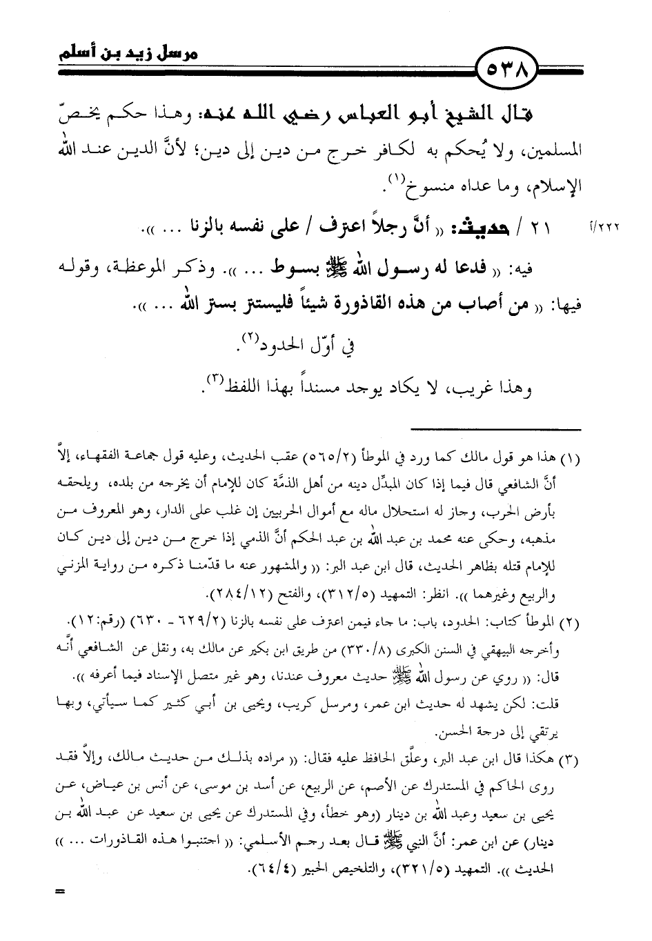 ٢١ / حديث: "أن رجلًا اعترف على نفسه بالزنا ... ".