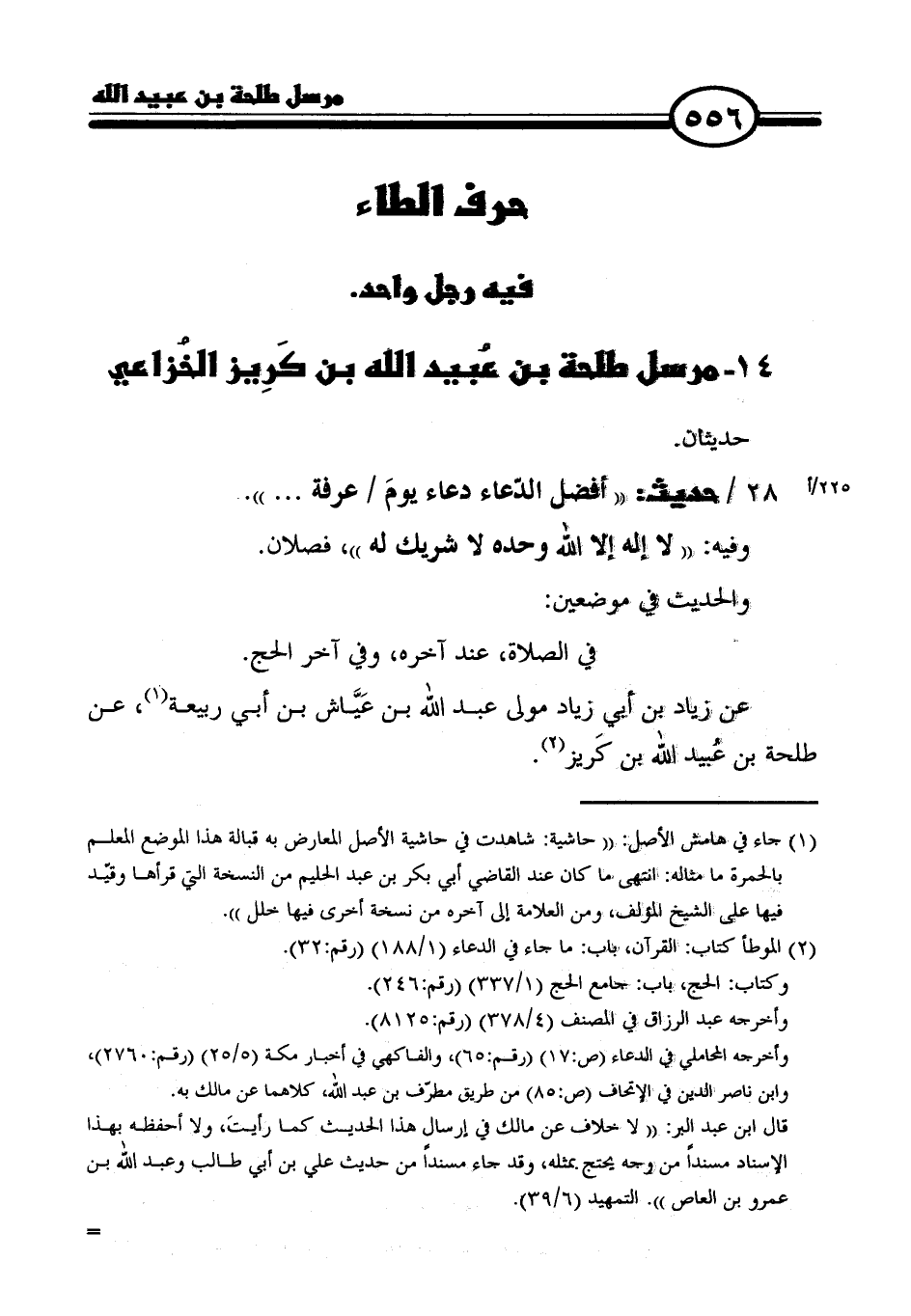 ١٤ - مرسل طلحة بن عبيد الله بن كريز الخزاعي