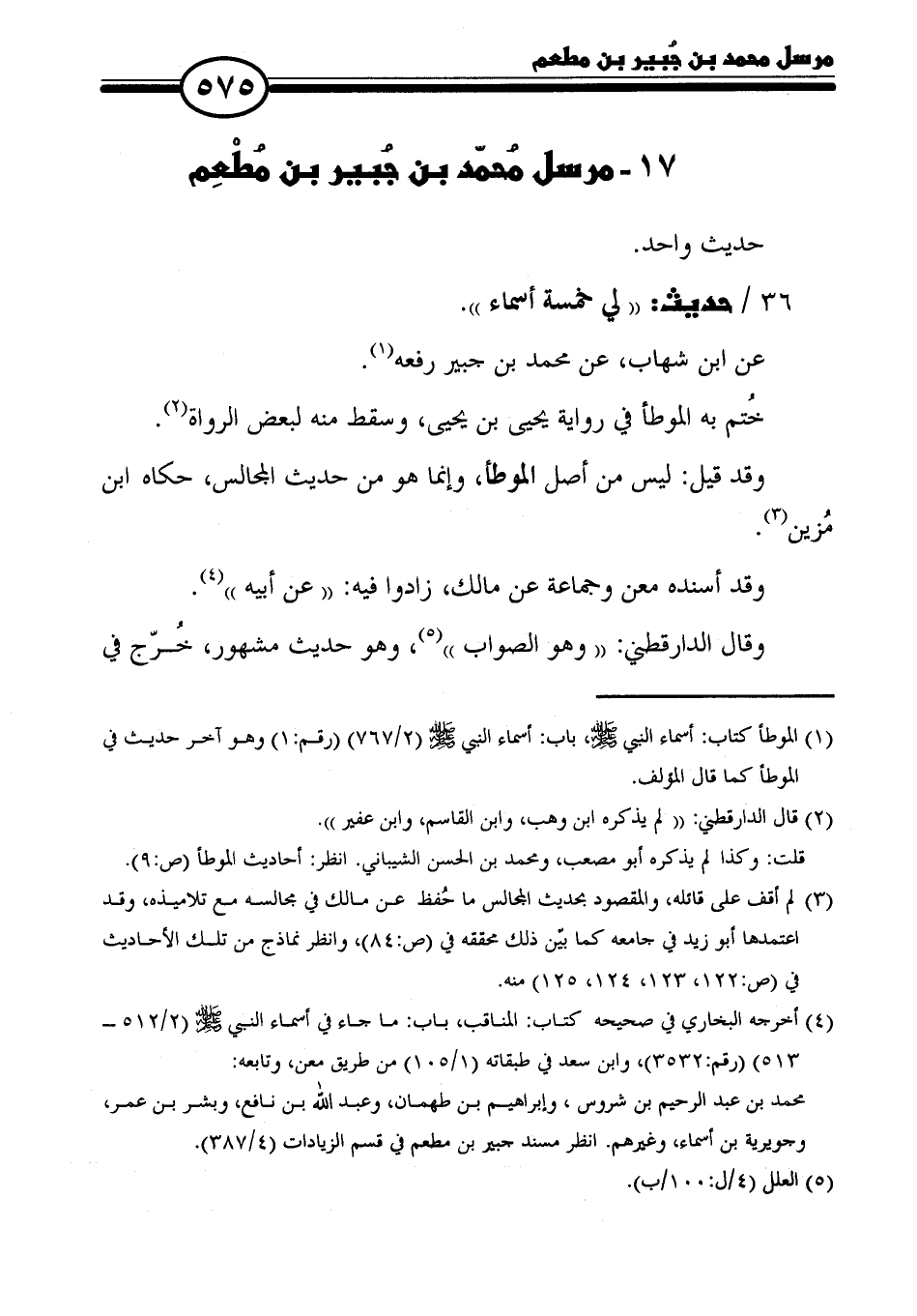 ١٧ - مرسل مُحمّد بن جُبير بن مُطْعِم