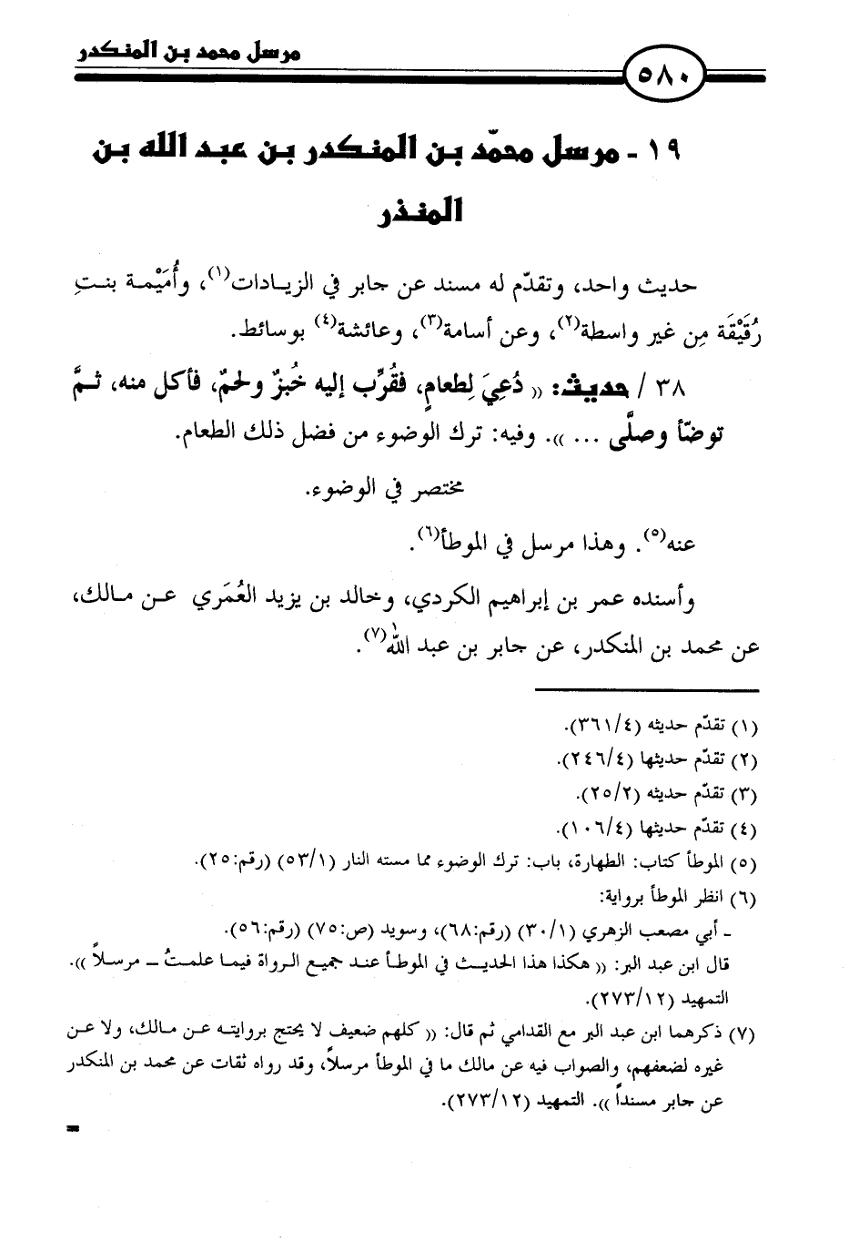 ١٩ - مرسل محمّد بن المنكدر بن عبد الله بن المنذر