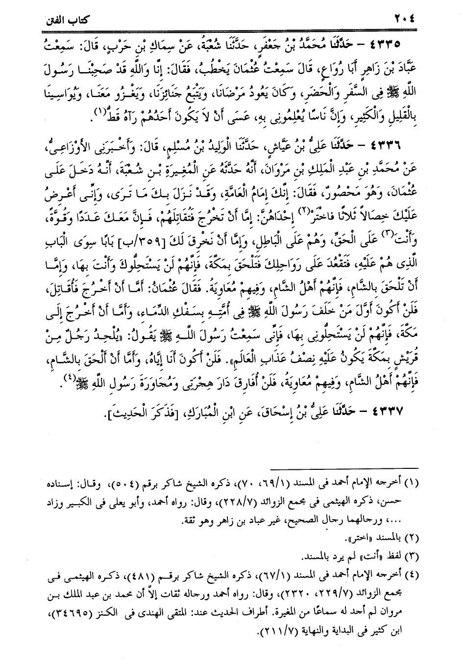 4337 - حَدَّثَنَا عَلِىُّ بْنُ إِسْحَاقَ، عَنِ ابْنِ الْمُبَارَكِ، [فَذَكَرَ الْحَدِيثَ] . -[205]-