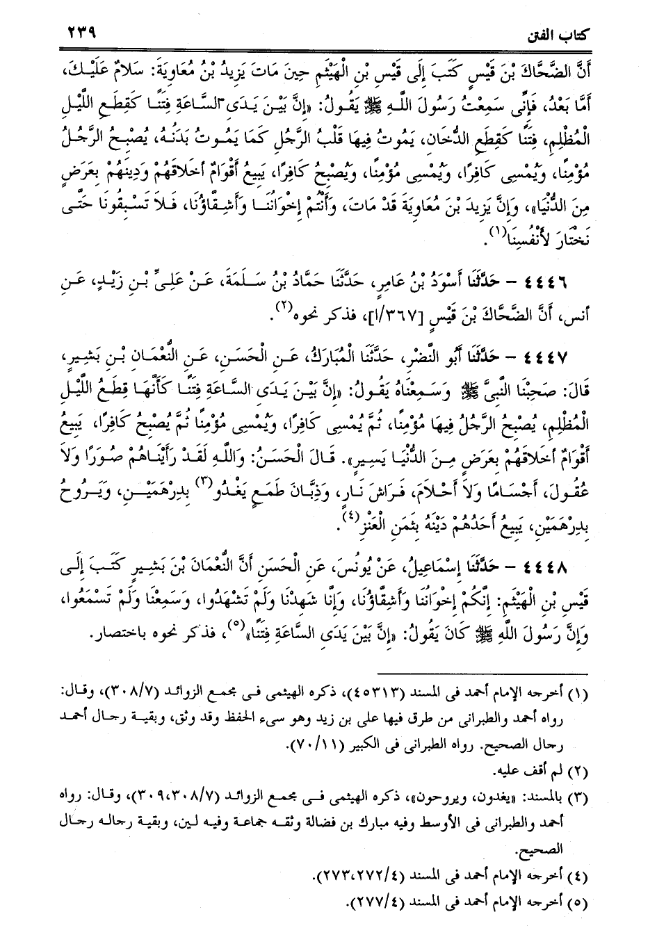 4448 - حَدَّثَنَا إِسْمَاعِيلُ، عَنْ يُونُسَ، عَنِ الْحَسَنِ أَنَّ النُّعْمَانَ بْنَ بَشِيرٍ كَتَبَ إِلَى قَيْسِ بْنِ الْهَيْثَمِ: إِنَّكُمْ إِخْوَانُنَا وَأَشِقَّاؤُنَا، وَإِنَّا شَهِدْنَا وَلَمْ تَشْهَدُوا، وَسَمِعْنَا وَلَمْ تَسْمَعُوا، وَإِنَّ رَسُولَ اللَّهِ صلى الله عليه وسلم كَانَ يَقُولُ: إِنَّ بَيْنَ يَدَىِ السَّاعَةِ فِتَنًا، فذكر نحوه باختصار.