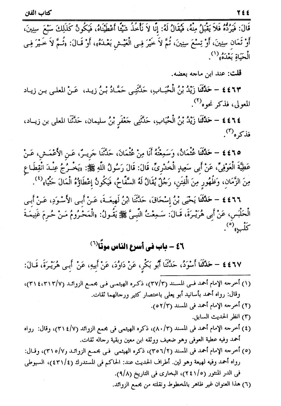4463 - حَدَّثَنَا زَيْدُ بْنُ الْحُبَابِ، حَدَّثَنِى حَمَّادُ بْنُ زيد، عَنْ المعلى بن زياد المعولى، فذكر نحوه.