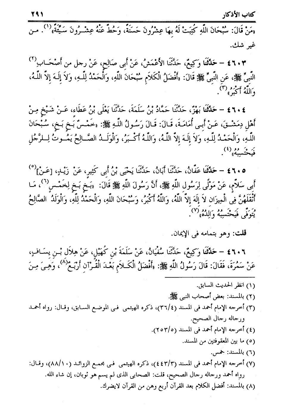 4603 - حَدَّثَنَا وَكِيعٌ، حَدَّثَنَا الأَعْمَشُ، عَنْ أَبِى صَالِحٍ، عَنْ رجل من أَصْحَابِ النَّبِىِّ صلى الله عليه وسلم، عَنِ النَّبِىِّ صلى الله عليه وسلم قَالَ: أَفْضَلُ الْكَلاَمِ سُبْحَانَ اللَّهِ، وَالْحَمْدُ لِلَّهِ، وَلاَ إِلَهَ إِلاَّ اللَّهُ، وَاللَّهُ أَكْبَرُ.