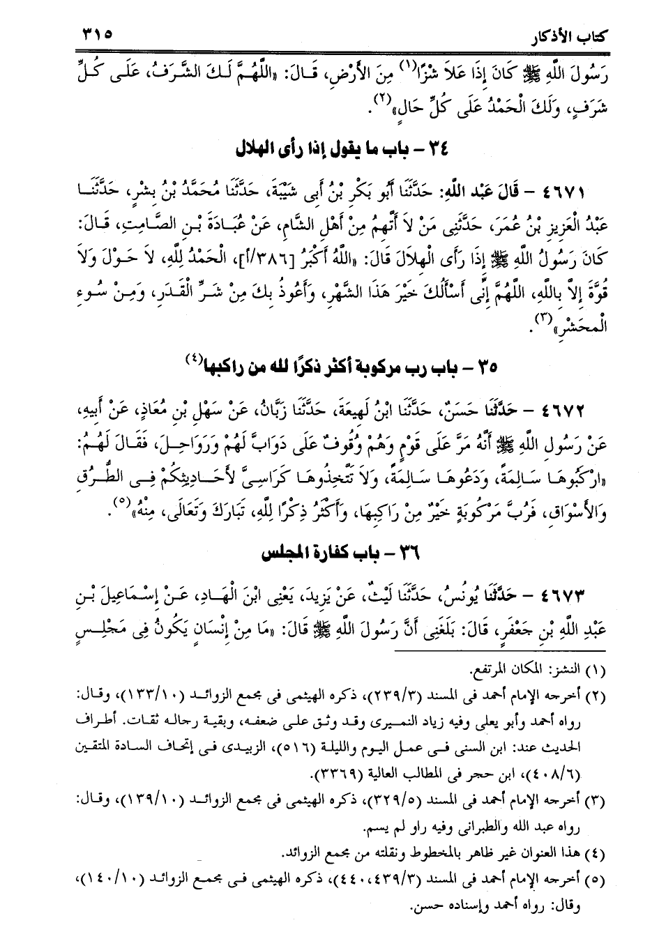 4671 - قَالَ عَبْد اللَّهِ: حَدَّثَنَا أَبُو بَكْرِ بْنُ أَبِى شَيْبَةَ، حَدَّثَنَا مُحَمَّدُ بْنُ بِشْرٍ، حَدَّثَنَا عَبْدُ الْعَزِيزِ بْنُ عُمَرَ، حَدَّثَنِى مَنْ لاَ أَتَّهِمُ مِنْ أَهْلِ الشَّامِ، عَنْ عُبَادَةَ بْنِ الصَّامِتِ، قَالَ: كَانَ رَسُولُ اللَّهِ صلى الله عليه وسلم إِذَا رَأَى الْهِلاَلَ قَالَ: اللَّهُ أَكْبَرُ، الْحَمْدُ لِلَّهِ، لاَ حَوْلَ وَلاَ قُوَّةَ إِلاَّ بِاللَّهِ، اللَّهُمَّ إِنِّى أَسْأَلُكَ خَيْرَ هَذَا الشَّهْرِ، وَأَعُوذُ بِكَ مِنْ شَرِّ الْقَدَرِ، وَمِنْ سُوءِ الْمحَشْرِ.