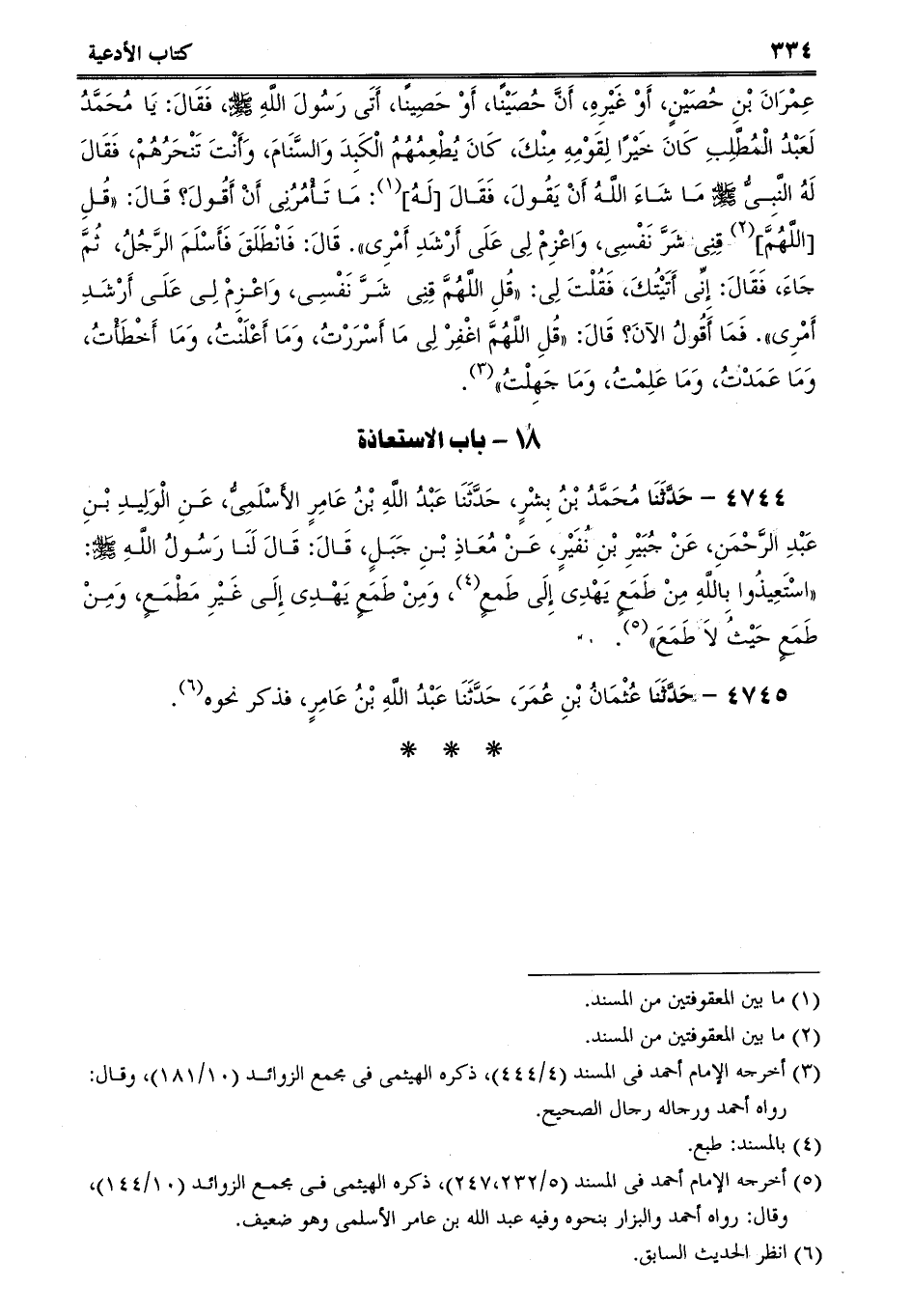 4744 - حَدَّثَنَا مُحَمَّدُ بْنُ بِشْرٍ، حَدَّثَنَا عَبْدُ اللَّهِ بْنُ عَامِرٍ الأَسْلَمِىُّ، عَنِ الْوَلِيدِ بْنِ عَبْدِ الرَّحْمَنِ، عَنْ جُبَيْرِ بْنِ نُفَيْرٍ، عَنْ مُعَاذِ بْنِ جَبَلٍ، قَالَ: قَالَ لَنَا رَسُولُ اللَّهِ صلى الله عليه وسلم: اسْتَعِيذُوا بِاللَّهِ مِنْ طَمَعٍ يَهْدِى إِلَى طَمعٍ، وَمِنْ طَمَعٍ يَهْدِى إِلَى غَيْرِ مَطْمَعٍ، وَمِنْ طَمَعٍ حَيْثُ لاَ طَمَعَ.