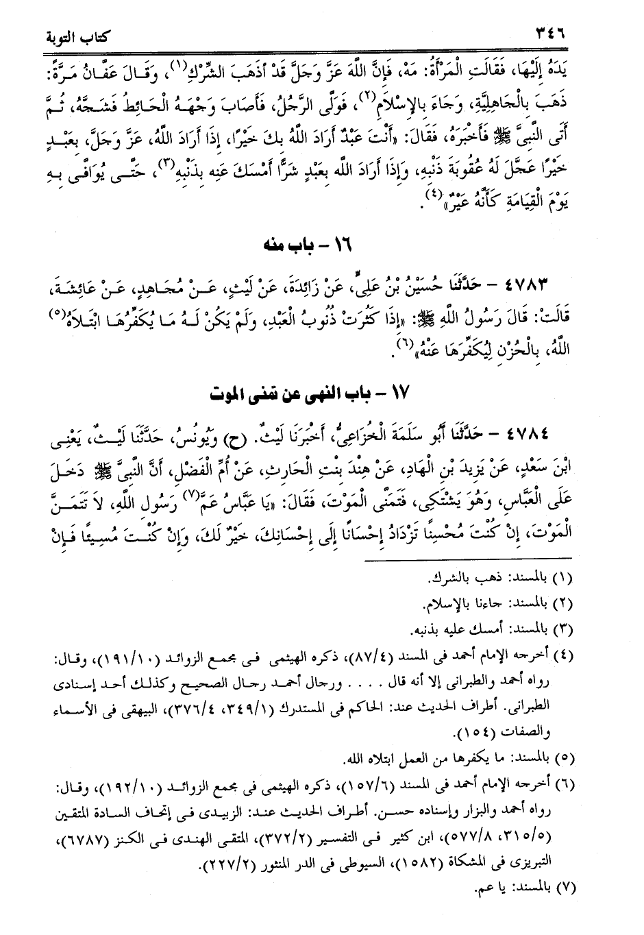 4784 - حَدَّثَنَا أَبُو سَلَمَةَ الْخُزَاعِىُّ، أَخْبَرَنَا لَيْثٌ. (ح) وَيُونُسُ، حَدَّثَنَا لَيْثٌ، يَعْنِى ابْنَ سَعْدٍ، عَنْ يَزِيدَ بْنِ الْهَادِ، عَنْ هِنْدَ بِنْتِ الْحَارِثِ، عَنْ أُمِّ الْفَضْلِ، أَنَّ النَّبِىَّ صلى الله عليه وسلم دَخَلَ عَلَى الْعَبَّاسِ، وَهُوَ يَشْتَكِى، فَتَمَنَّى الْمَوْتَ، فَقَالَ: يَا عَبَّاسُ عَمَّ رَسُولِ اللَّهِ، لاَ تَتَمَنَّ الْمَوْتَ، إِنْ كُنْتَ مُحْسِنًا تَزْدَادُ إِحْسَانًا إِلَى إِحْسَانِكَ، خَيْرٌ لَكَ، وَإِنْ كُنْتَ مُسِيئًا فَإِنْ -[347]- تُؤَخَّرْ تَسْتَعْتِبْ خَيْرٌ لَكَ، فَلاَ تَتَمَنَّ الْمَوْتَ. قَالَ يُونُسُ: وَإِنْ كُنْتَ مُسِيئًا، فَإِنْ تُؤَخَّرْ تَسْتَعْتِبْ مِنْ إِسَاءَتِكَ خَيْرٌ لَكَ.