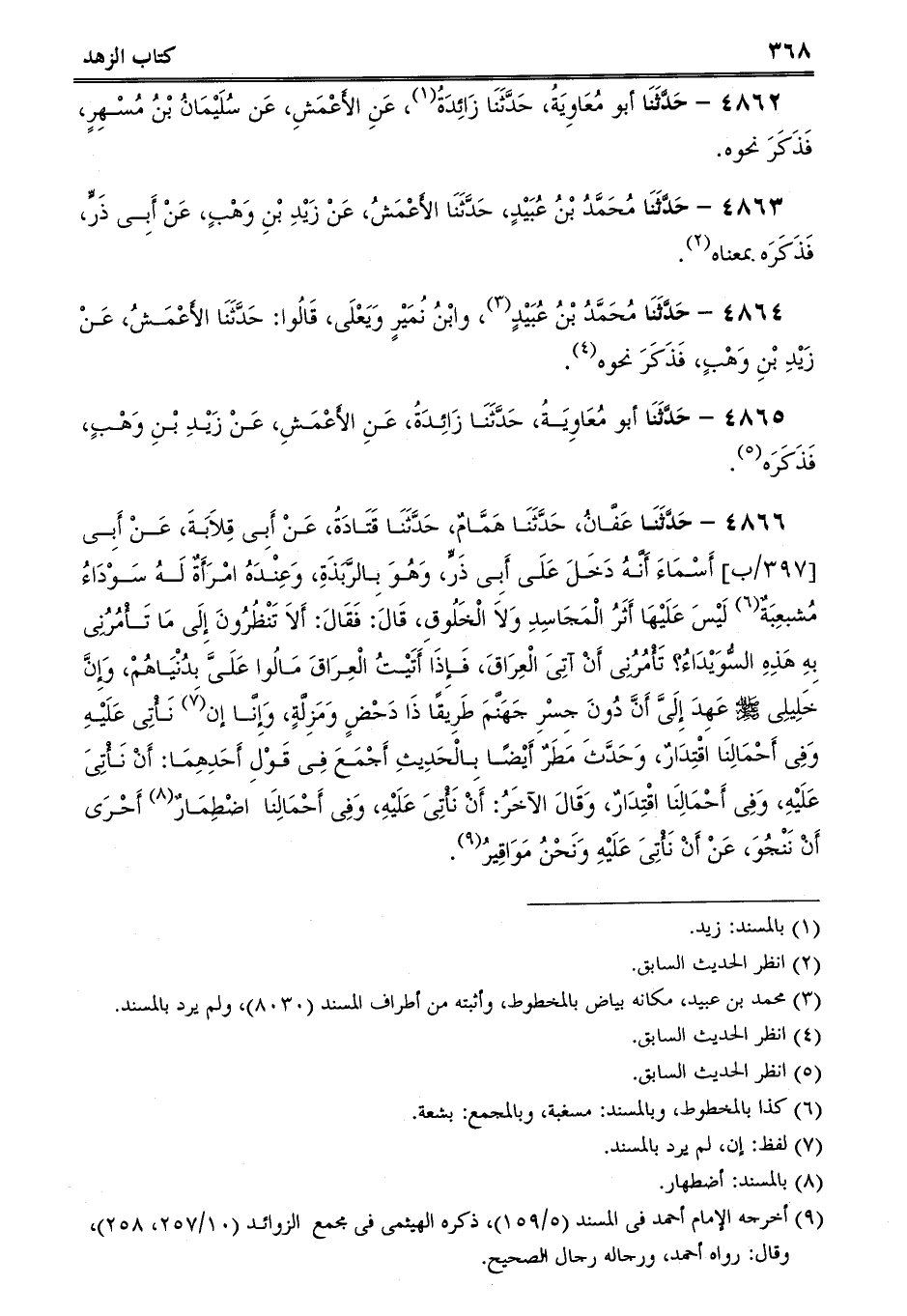 4865 - حَدَّثَنَا أبو مُعَاوِيَةُ، حَدَّثَنَا زَائِدَةُ، عَنِ الأَعْمَشِ، عَنْ زَيْدِ بْنِ وَهْبٍ، فَذَكَرَه.
