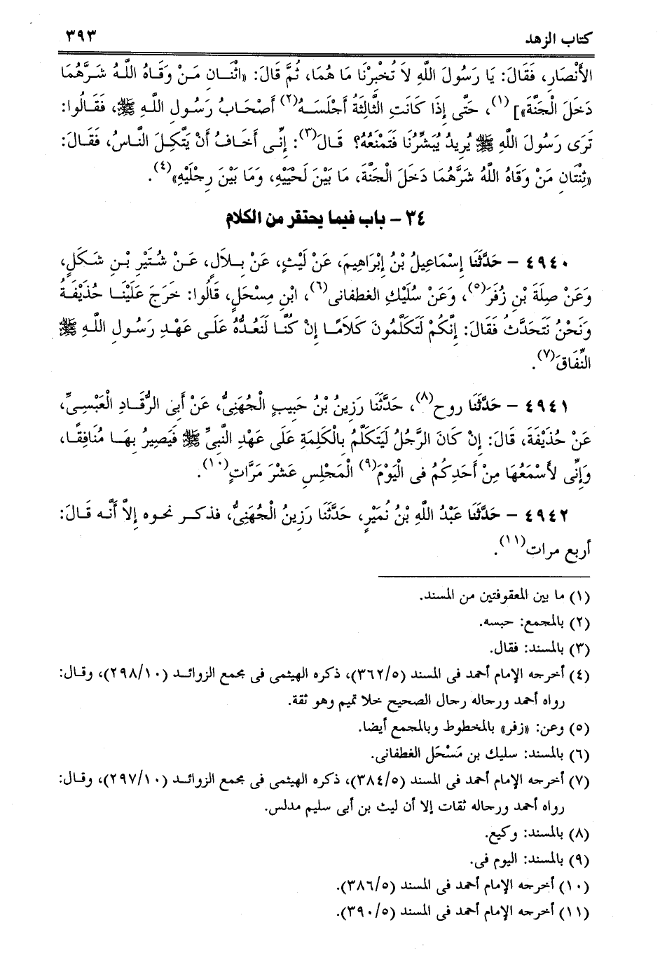 4941 - حَدَّثَنَا روح، حَدَّثَنَا رَزِينُ بْنُ حَبِيبٍ الْجُهَنِىُّ، عَنْ أَبِى الرُّقَادِ الْعَبْسِىِّ، عَنْ حُذَيْفَةَ، قَالَ: إِنْ كَانَ الرَّجُلُ لَيَتَكَلَّمُ بِالْكَلِمَةِ عَلَى عَهْدِ النَّبِىِّ صلى الله عليه وسلم فَيَصِيرُ بِهَا مُنَافِقًا، وَإِنِّى لأَسْمَعُهَا مِنْ أَحَدِكُمُ فى الْيَوْمَ الْمَجْلِسِ عَشْرَ مَرَّاتٍ.