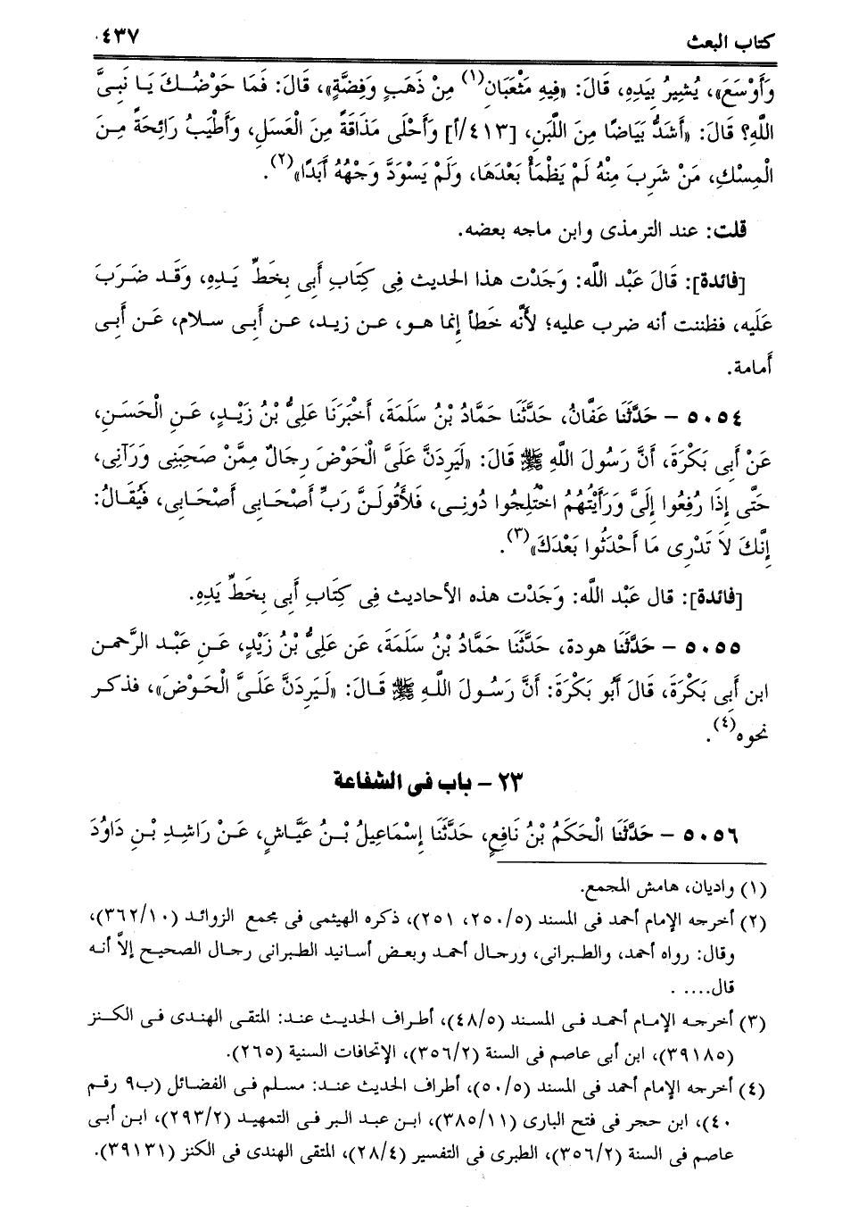 5055 - حَدَّثَنَا هودة، حَدَّثَنَا حَمَّادُ بْنُ سَلَمَةَ، عَن عَلِىُّ بْنُ زَيْدٍ، عَنِ عَبْد الرَّحمن ابن أَبِى بَكْرَةَ، قَالَ أَبُو بَكْرَةَ: أَنَّ رَسُولَ اللَّهِ صلى الله عليه وسلم قَالَ: لَيَرِدَنَّ عَلَىَّ الْحَوْضَ، فذكر نحوه.