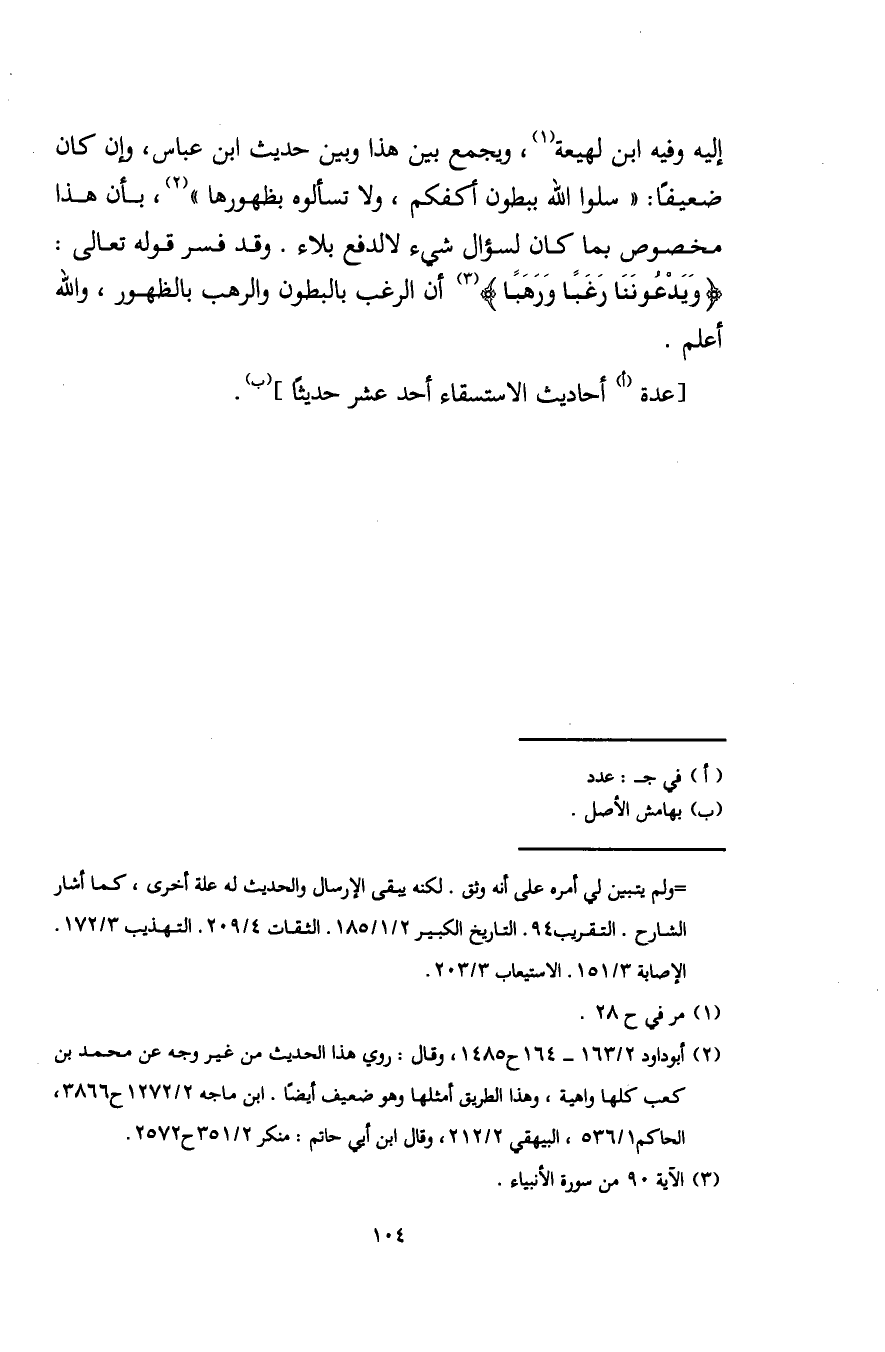 = ولم يتبين لي أمره على أنه وثق. لكنه يبقى الإرسال والحديث له علة أخرى، كما أشار الشارح. التقريب 94. التاريخ الكبير 2/ 1 / 185. الثقات 4/ 209. التهذيب 3/ 172.