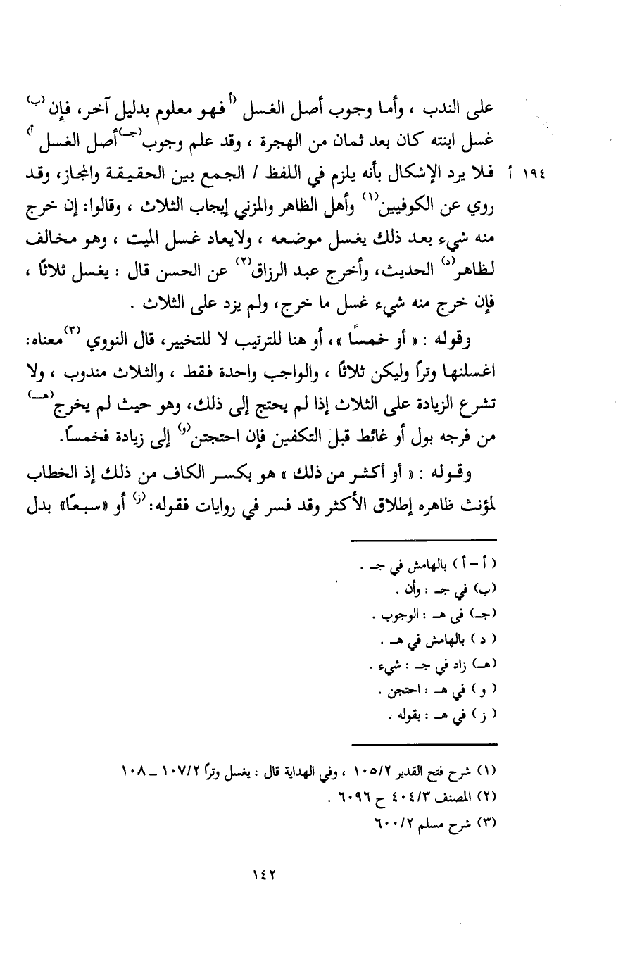 (¬1) شرح فتح القدير 2/ 105، وفي الهداية قال: يغسل وترًا 2/ 107 - 108.