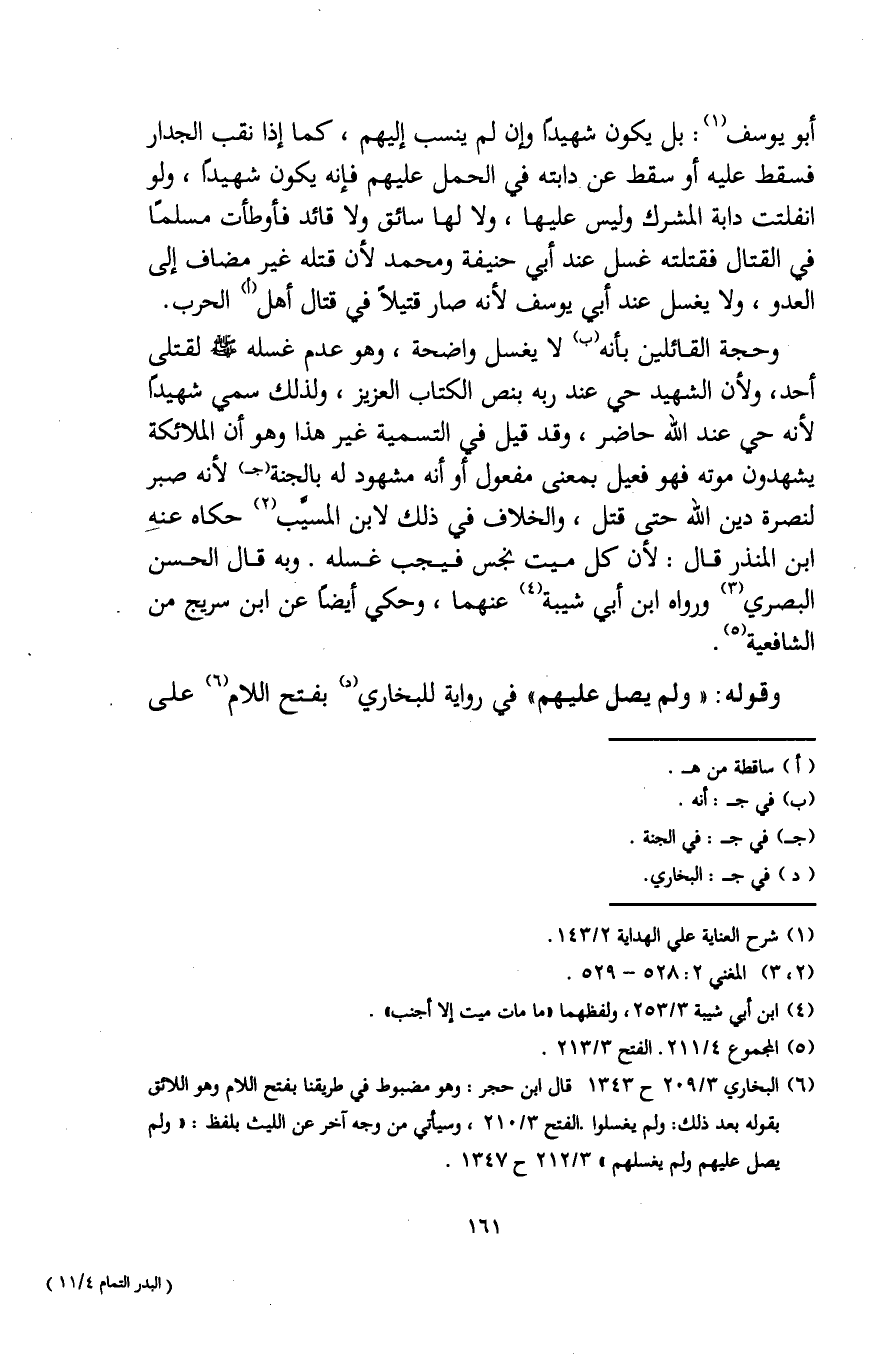 (¬6) البخاري 3/ 209 ح 1343 قال ابن حجر: وهو مضبوط في طريقنا بفتح اللام وهو اللائق بقوله بعد ذلك: ولم يغسلوا. الفتح 3/ 210، وسيأتي من وجه آخر عن الليث بلفظ: "ولم يصل عليهم ولم يغسلهم" 3/ 212 ح 1347.